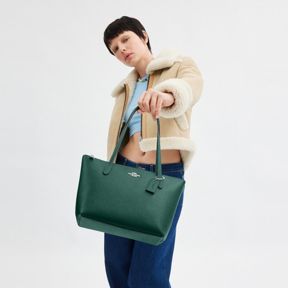COACH FACTORY OUTLET PRICE CHART - CW395 - FIONA ZIP TOTE BAG - SILVER/EMERALD GREEN