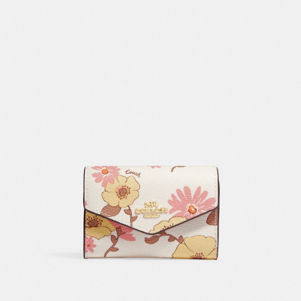 COACH FACTORY OUTLET PRICE CHART - CH203 - FLAP CARD CASE WITH FLORAL CLUSTER PRINT - GOLD/CHALK MULTI