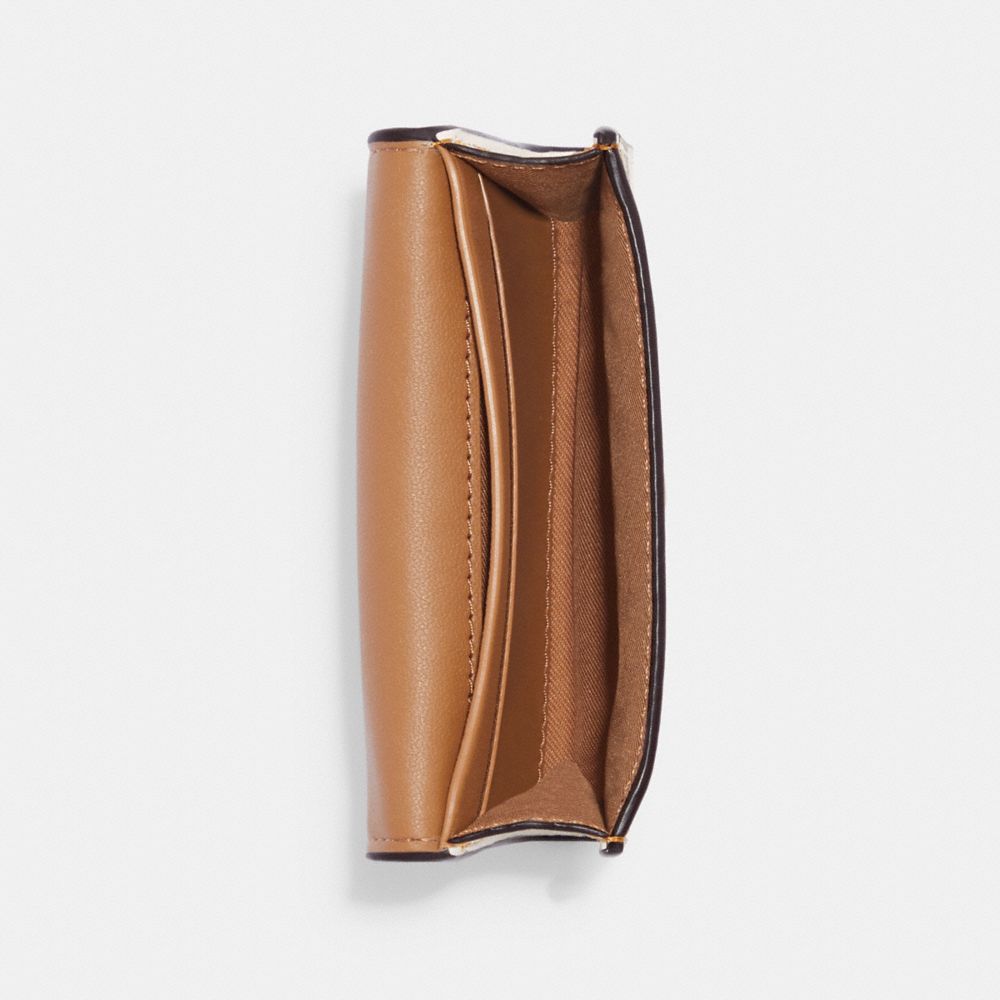 | Printed coated canvas and smooth leather | Three credit card slots | Snap closure | Outside open pocket | 4" (L) x 2 3/4" (H)|Style No. CH203|