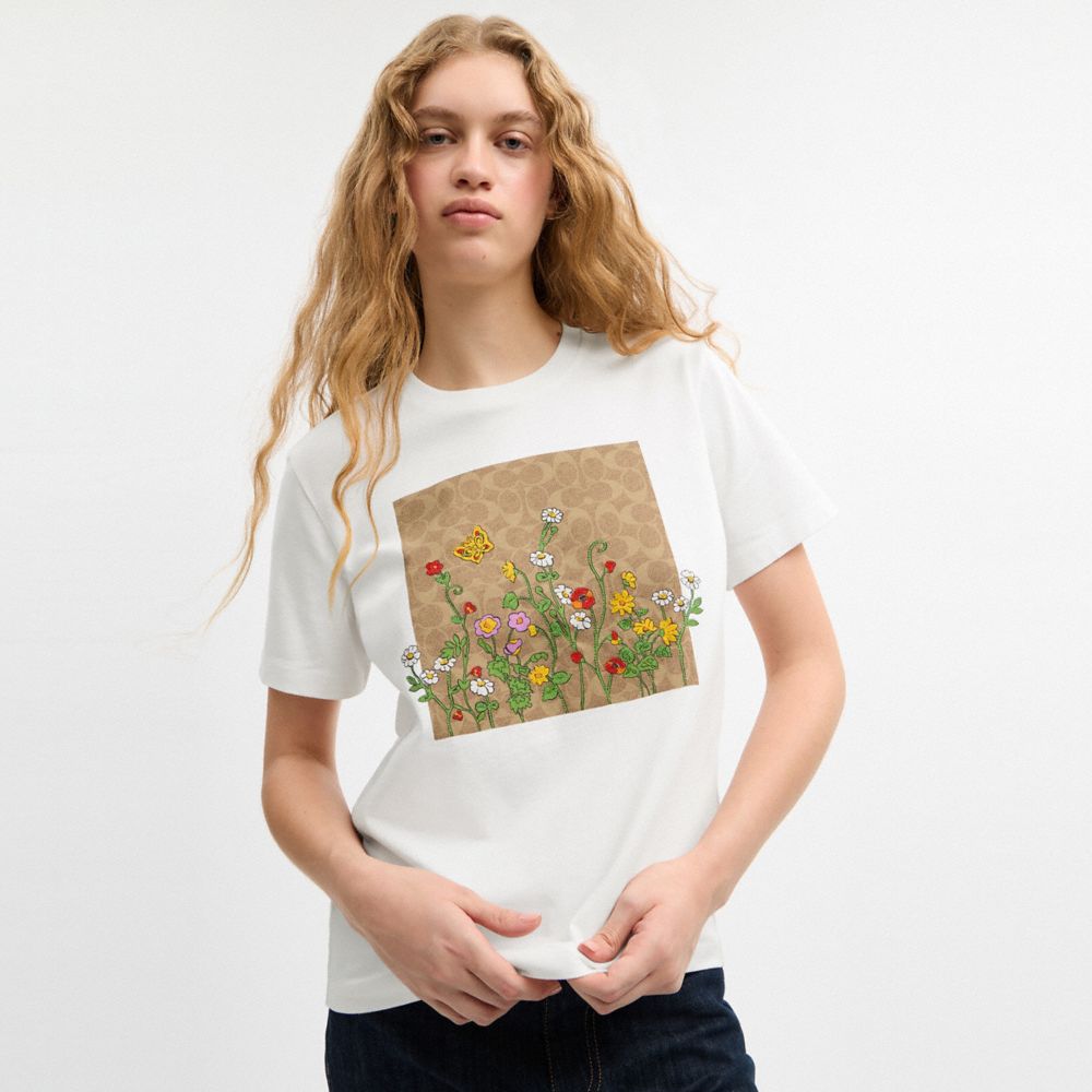 FLORAL SIGNATURE SQUARE CLASSIC T-SHIRT IN ORGANIC COTTON (COACH CEB57)