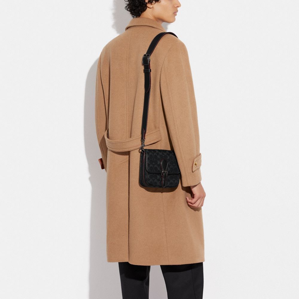 | Signature denim and refined calf leather | Inside zip and multifunction pockets | Magnetic snap closure, fabric lining | Outside magnetic snap pocket | Detachable strap with 21 3/4" drop for shoulder or crossbody wear | 6 1/2" (L) x 6 1/4" (H) x 2 1/4" (W)|Style No. CE517|