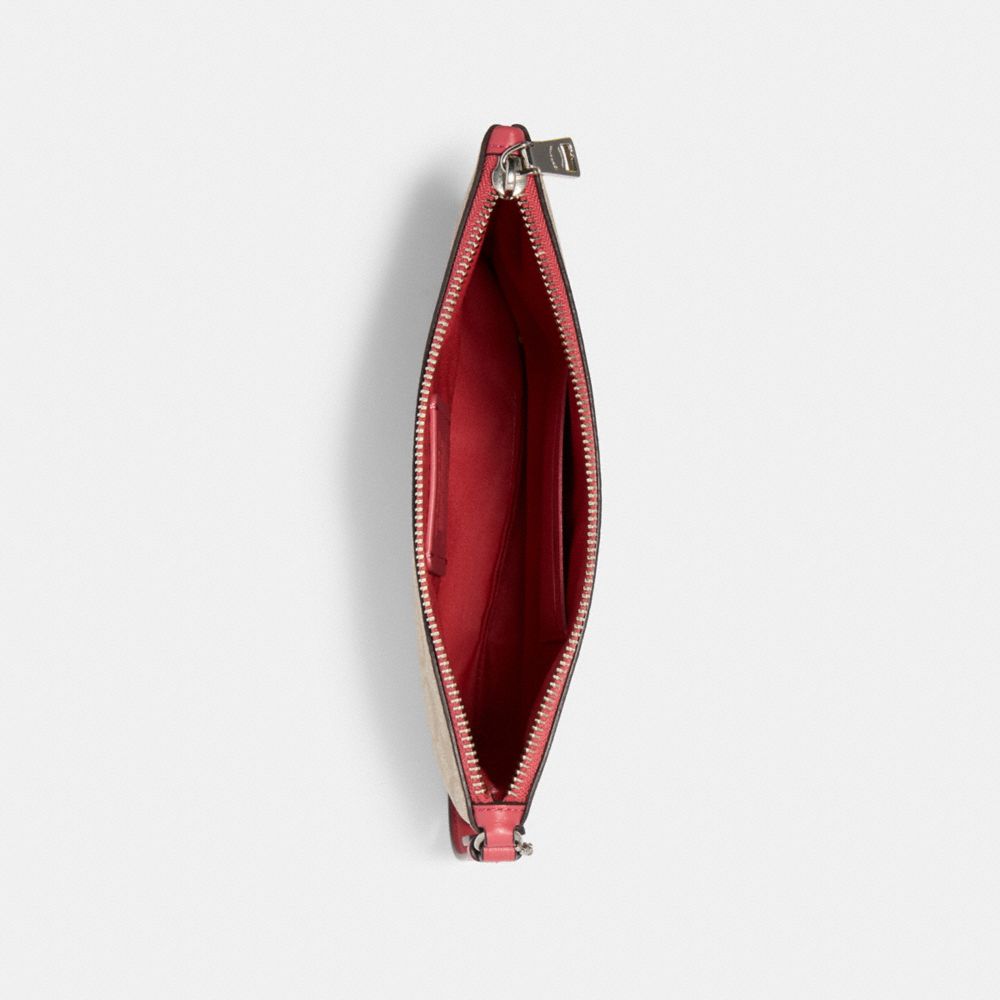 COACH FACTORY OUTLET PRICE CHART - 91543 - GALLERY POUCH IN SIGNATURE CANVAS WITH HORSE AND CARRIAGE HEARTS MOTIF - SV/LIGHT KHAKI MULTI/POPPY