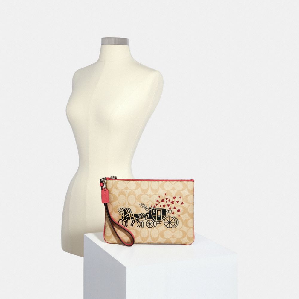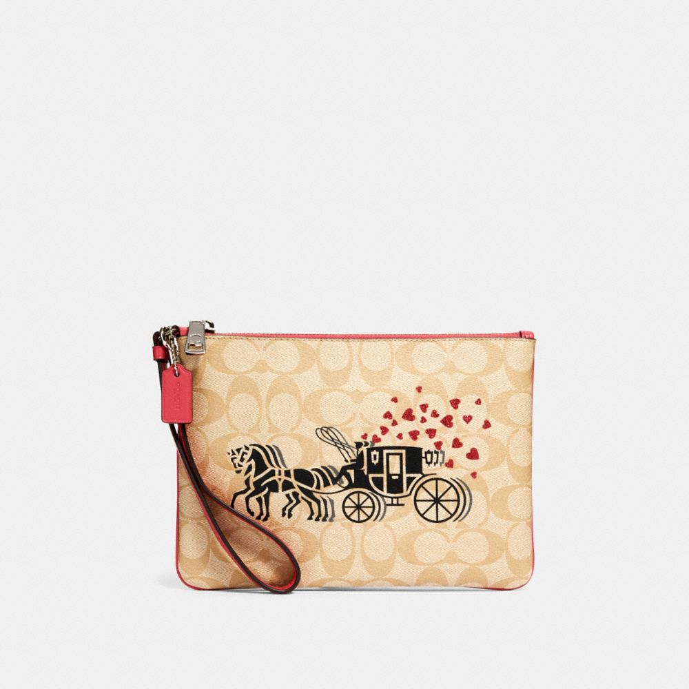 GALLERY POUCH IN SIGNATURE CANVAS WITH HORSE AND CARRIAGE HEARTS MOTIF (COACH 91543)