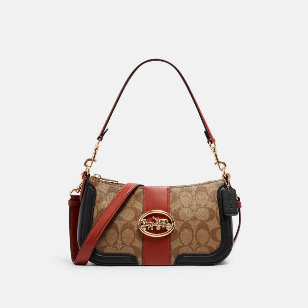 COACH FACTORY OUTLET PRICE CHART - 5498 - GEORGIE BAGUETTE IN COLORBLOCK SIGNATURE CANVAS - IM/KHAKI/TERRACOTTA MULTI