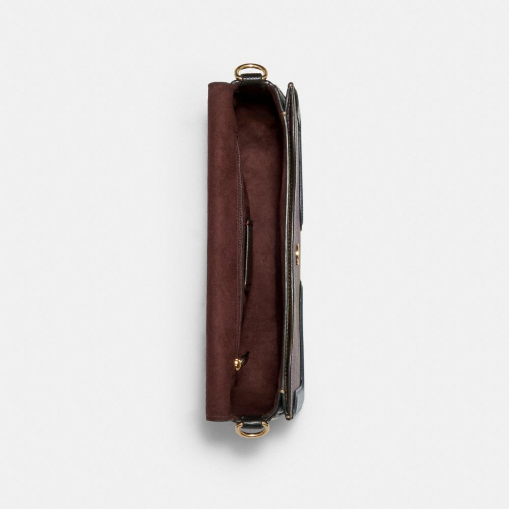 Signature coated canvas, refined pebble leather and smooth leather| Inside zip pocket| Snap closure, fabric lining| Detachable handle with 9" drop| Outside open pocket| Detachable strap with 22" drop for shoulder or crossbody wear| 10 3/4" (L) x 5 1/2" (H) x 2 3/4" (W)
