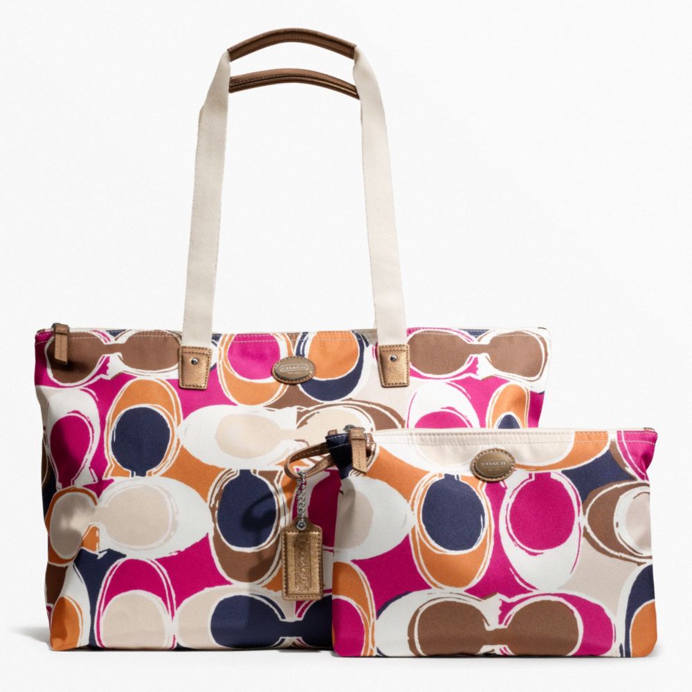 GETAWAY HAND DRAWN SCARF PRINT PACKABLE WEEKENDER (COACH F77419)