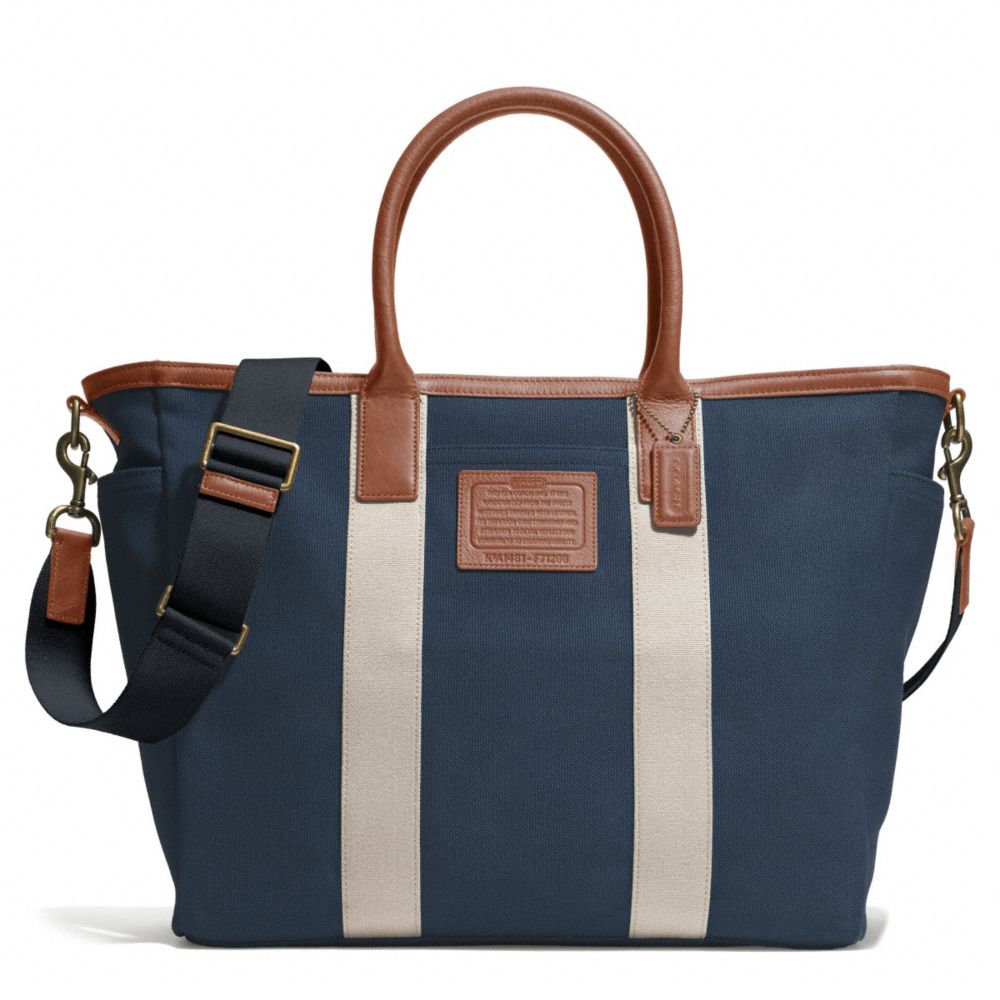 COACH FACTORY OUTLET PRICE CHART - F71266 - GETAWAY HERITAGE SOLID CANVAS BEACH TOTE - ANTIQUE BRASS/NAVY/SADDLE