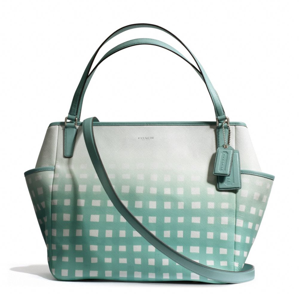 COACH FACTORY OUTLET PRICE CHART - F30342 - GINGHAM SAFFIANO BABY BAG TOTE - SILVER/WHITE/DUCK EGG