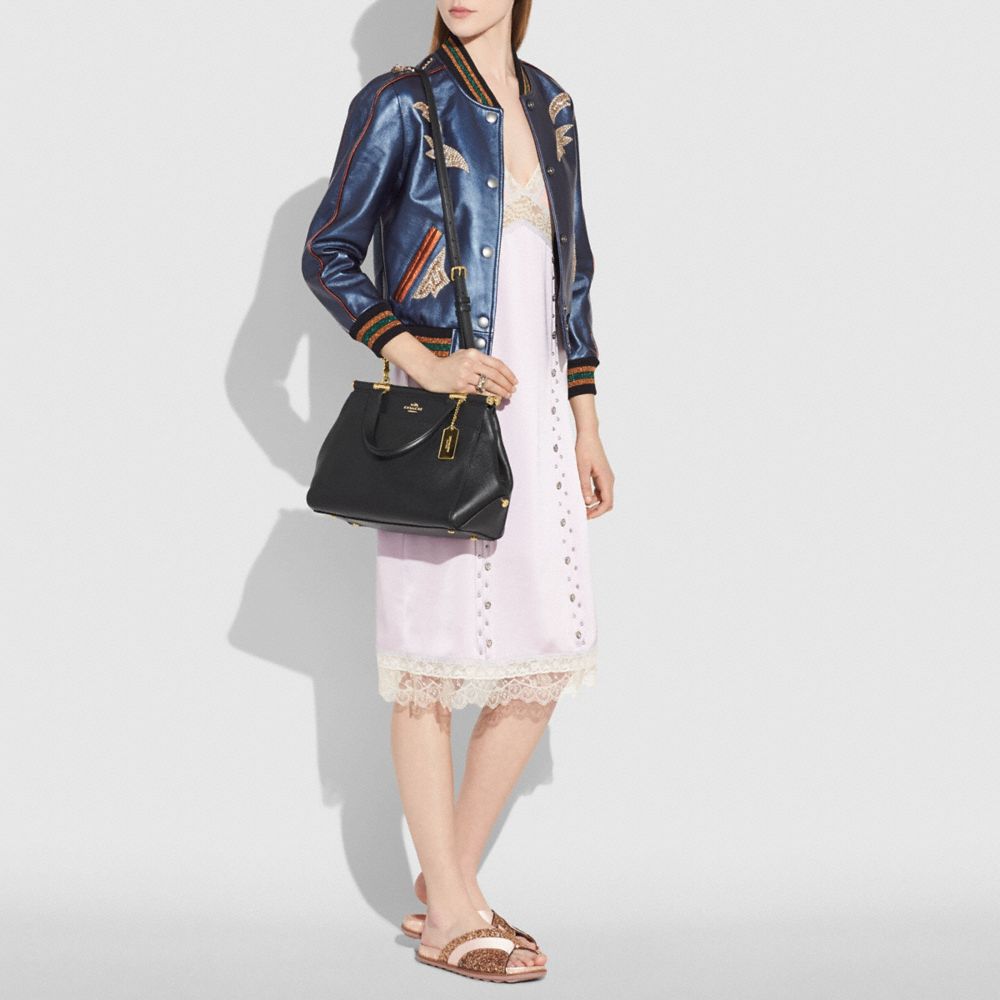 Polished pebble leather| Inside zip, cell phone and multifunction pockets| Zip-top closure, fabric lining| Handles with 5" drop| Outside open pocket| Detachable strap with 20 1/2" drop for shoulder or crossbody wear| Instantly change the look of your bag with an interchangeable strap.| 11 1/4" (L) x 9 1/4" (H) x 6" (W)| Also available in other sizes