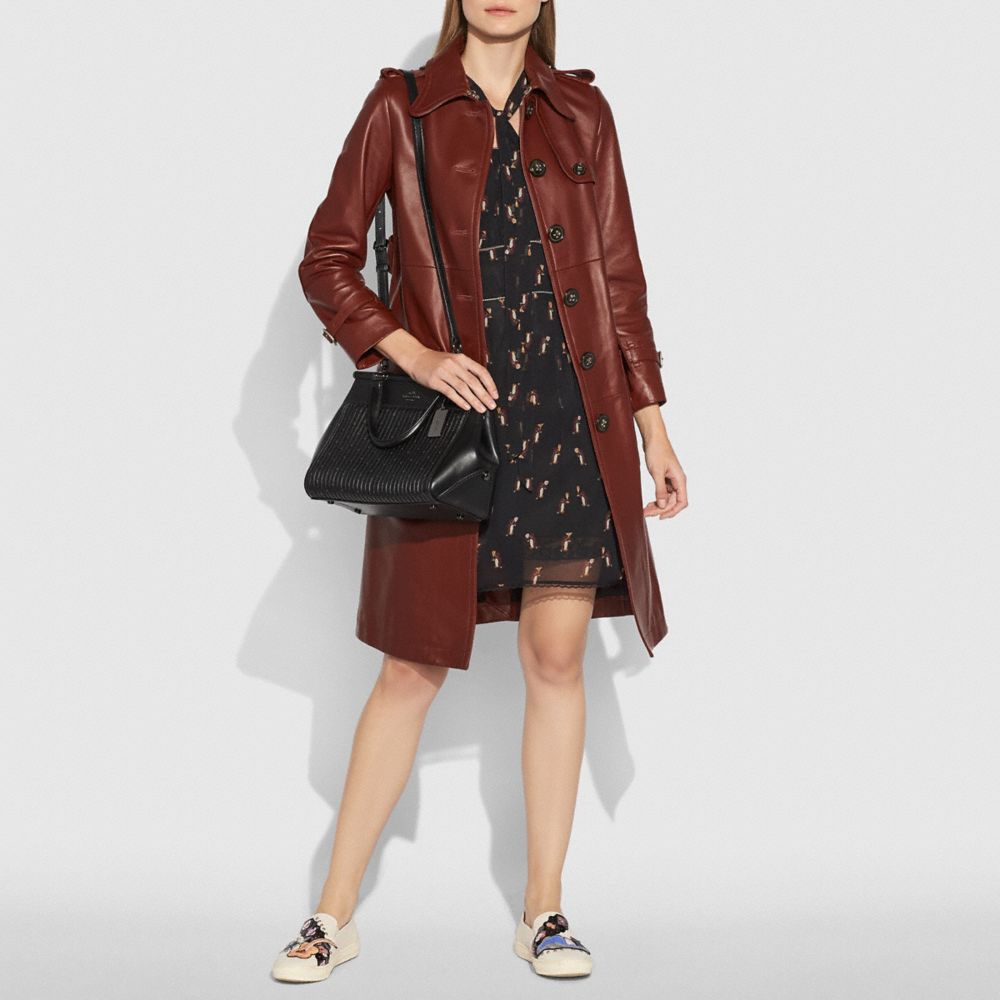 Nappa leather| Inside zip, cell phone and multifunction pockets| Zip-top closure, fabric lining| Handles with 5" drop| Outside open pocket| Detachable strap with 20 1/2" drop for shoulder or crossbody wear| Instantly change the look of your bag with an interchangeable strap.| 11 1/4" (L) x 9 1/4" (H) x 6" (W)| Also available in other sizes