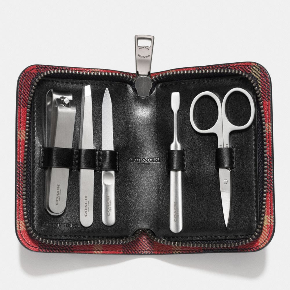 GROOMING KIT IN PLAID PRINT COATED CANVAS (COACH F55436)