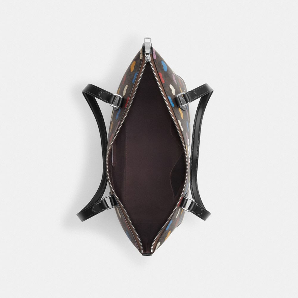 COACH FACTORY OUTLET PRICE CHART - CP108 - GALLERY TOTE IN SIGNATURE CANVAS WITH HEART PRINT - SILVER/BROWN BLACK MULTI