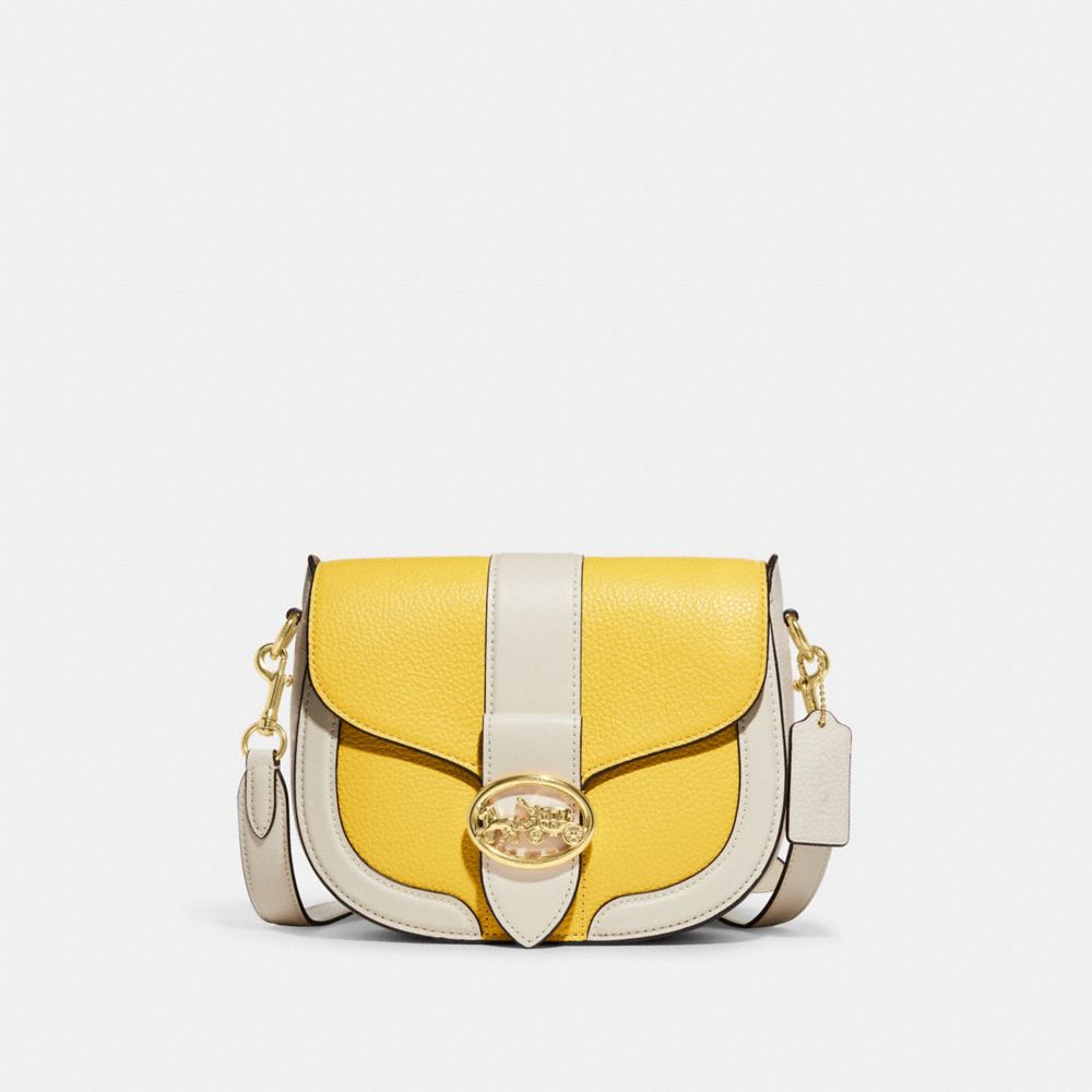 COACH FACTORY OUTLET PRICE CHART - C8296 - GEORGIE SADDLE BAG IN COLORBLOCK - GOLD/RETRO YELLOW/CHALK