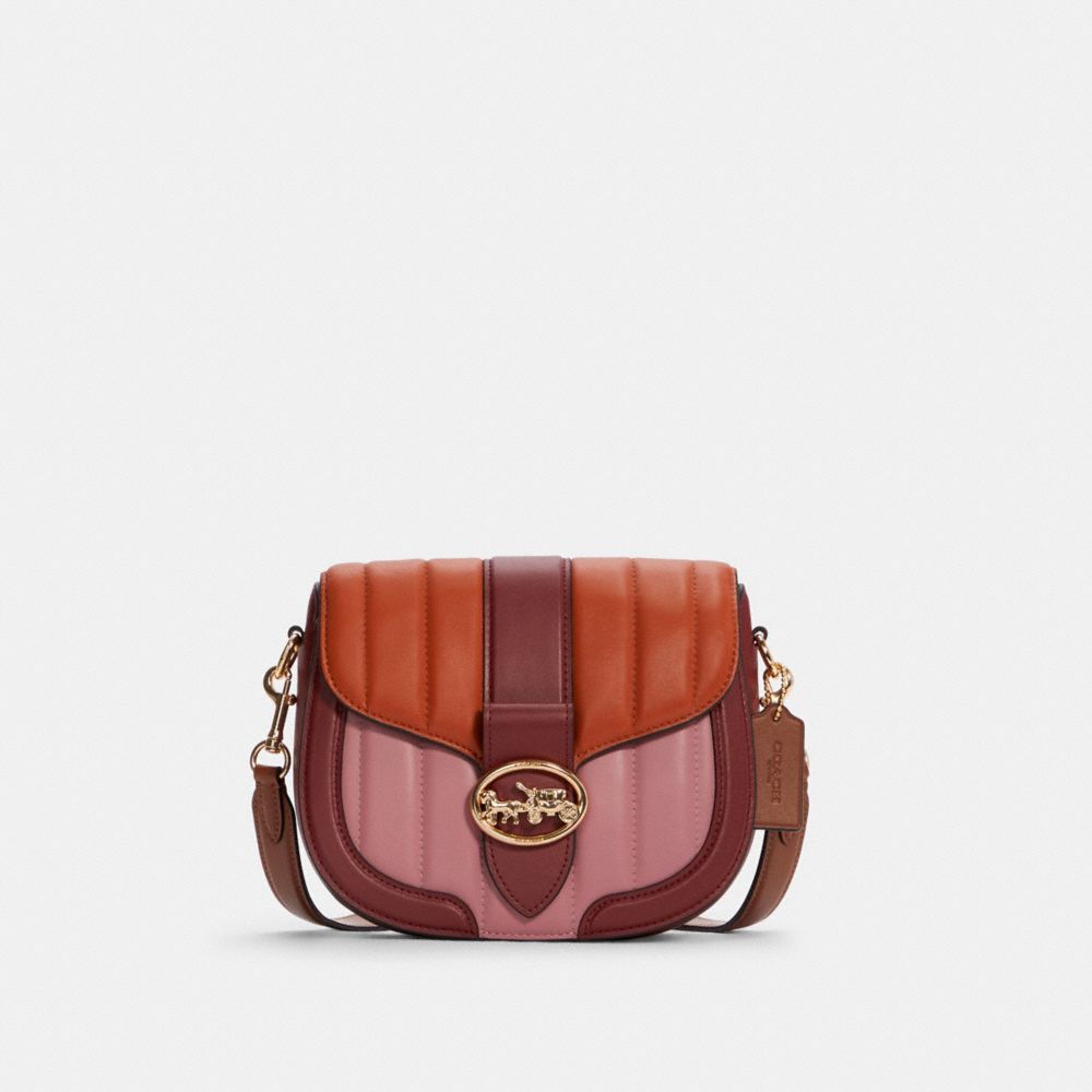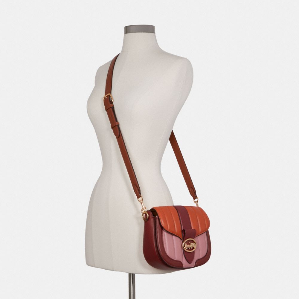 COACH FACTORY OUTLET PRICE CHART - C5798 - GEORGIE SADDLE BAG WITH COLORBLOCK PUFFY QUILTING - GOLD/TRUE PINK MULTI