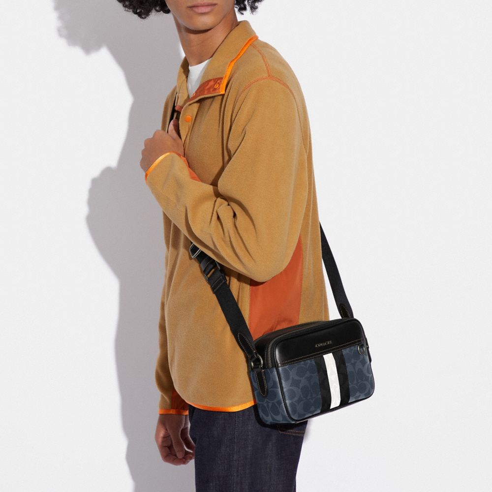 GRAHAM CROSSBODY IN BLOCKED SIGNATURE CANVAS WITH VARSITY STRIPE (COACH C9965)