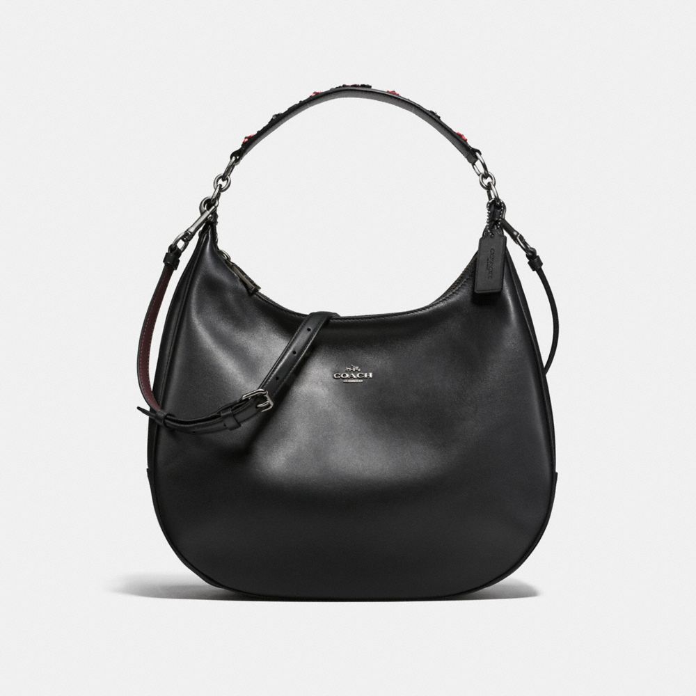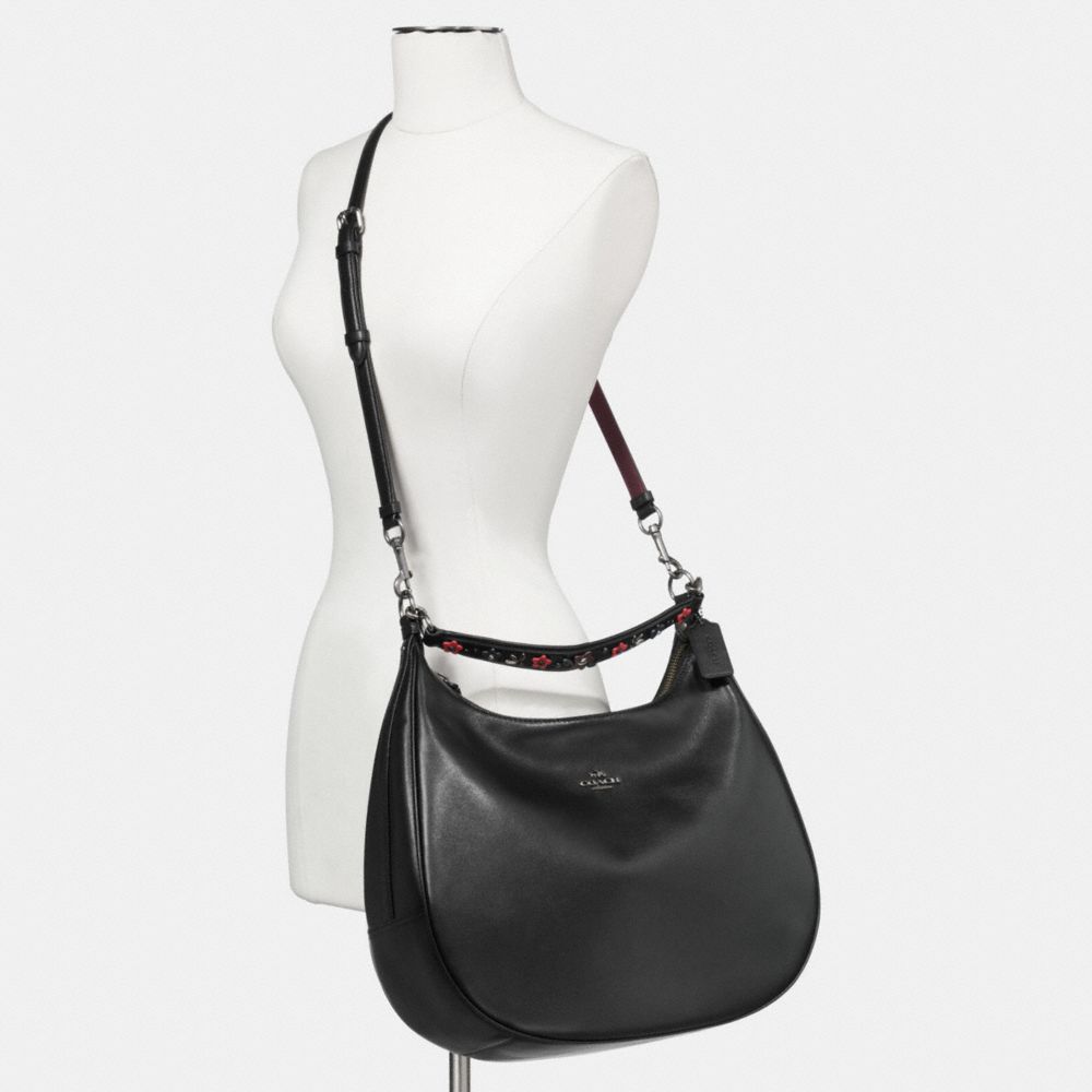COACH FACTORY OUTLET PRICE CHART - F59455 - HARLEY HOBO IN NATURAL REFINED LEATHER WITH FLORAL APPLIQUE STRAP - ANTIQUE NICKEL/BLACK