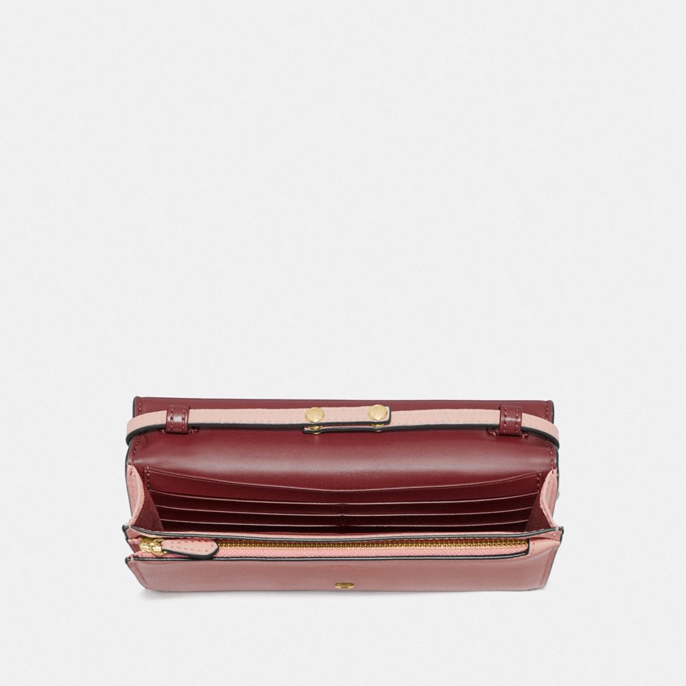 | Signature coated canvas and refined calf leather| Eight credit card slots| Full-length bill compartment| Inside zip pocket| Snap closure| Outside slip pocket| Detachable strap with 23" drop for shoulder or crossbody wear| 8" (L) x 4 3/4" (H) x 1 1/2" (W)