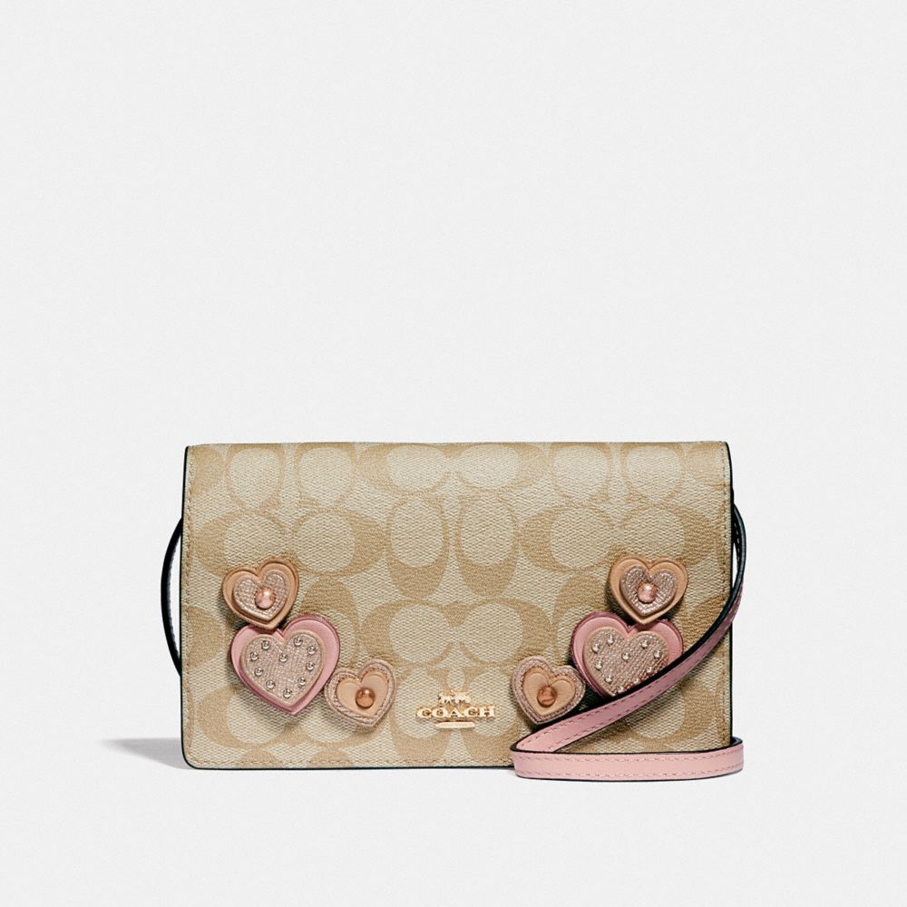 HAYDEN FOLDOVER CROSSBODY CLUTCH IN SIGNATURE CANVAS WITH HEART APPLIQUE (COACH F55612)