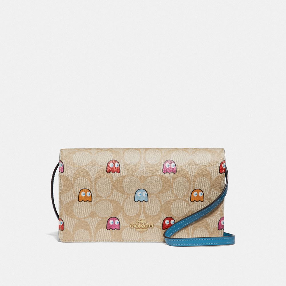 HAYDEN FOLDOVER CROSSBODY CLUTCH IN SIGNATURE CANVAS WITH PAC-MAN GHOSTS PRINT (COACH F73447)