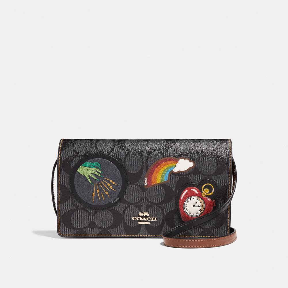 HAYDEN FOLDOVER CROSSBODY CLUTCH IN SIGNATURE CANVAS WITH WIZARD OF OZ PATCHES (COACH F39268)