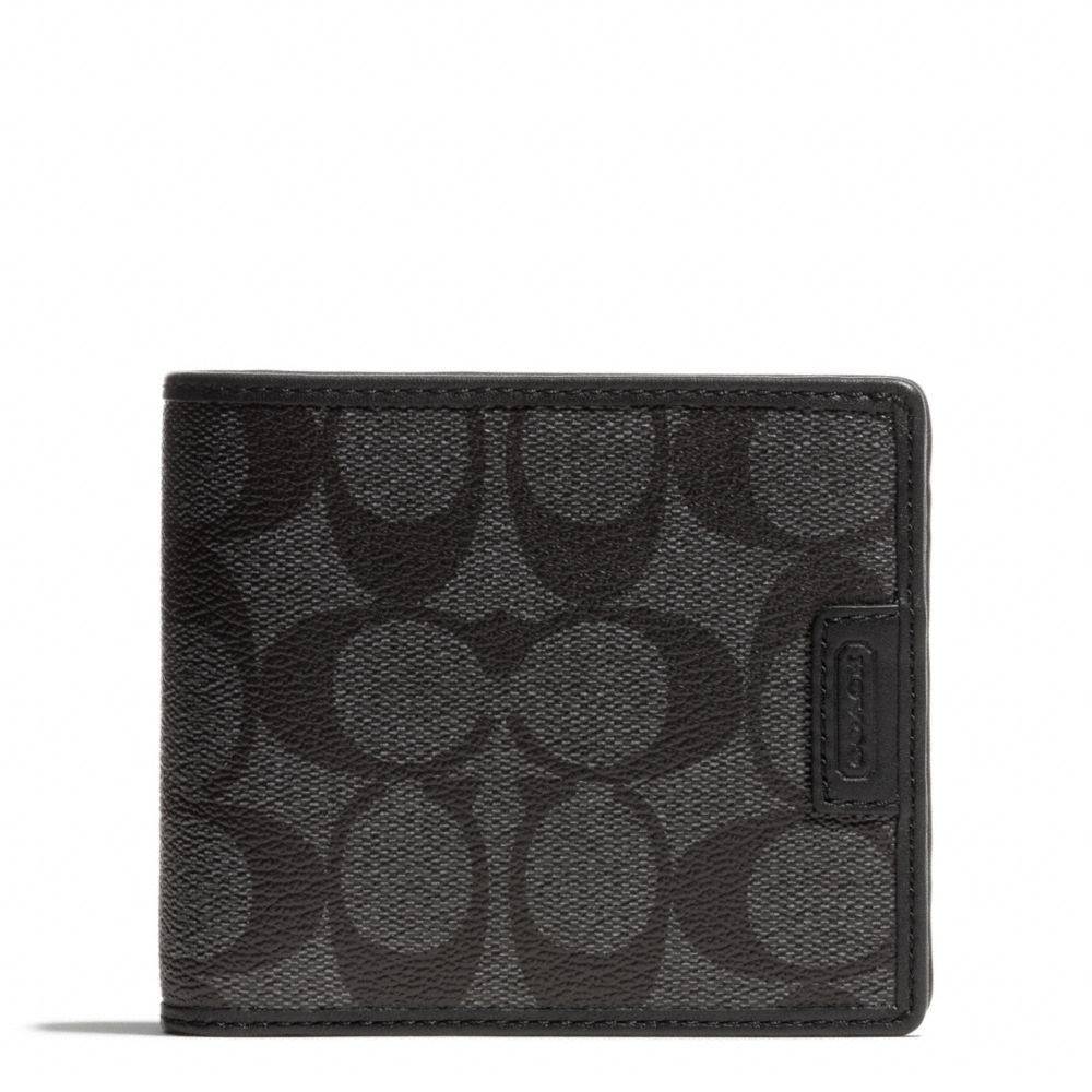 COACH FACTORY OUTLET PRICE CHART - F74736 - HERITAGE SIGNATURE COMPACT ID WALLET - CHARCOAL/BLACK