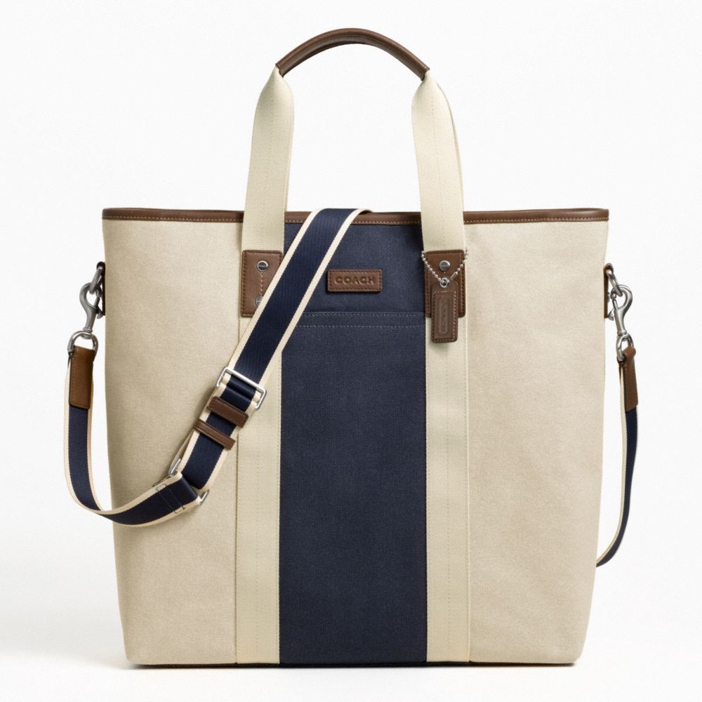 HERITAGE WEB CANVAS PIECED STRIPE TOTE (COACH F70825)