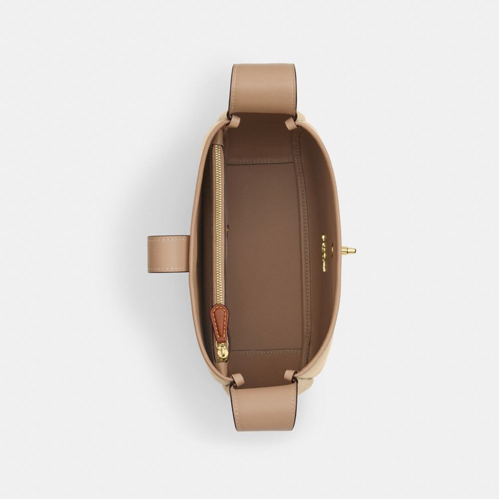 | Signature canvas and smooth leather | Inside zip pocket | Turnlock closure, fabric lining | Adjustable strap with 20 1/2" drop for shoulder or crossbody wear | 9 3/4" (L) x 9 1/2" (H) x 3 1/4" (W) | Exclusive of trim, this piece is crafted of cotton sourced from farms that use regenerative agricultural practices—those that help to maintain and rejuvenate land, increase biological diversity and soil health, and could lead to increased carbon absorption|Style No. CAK50|