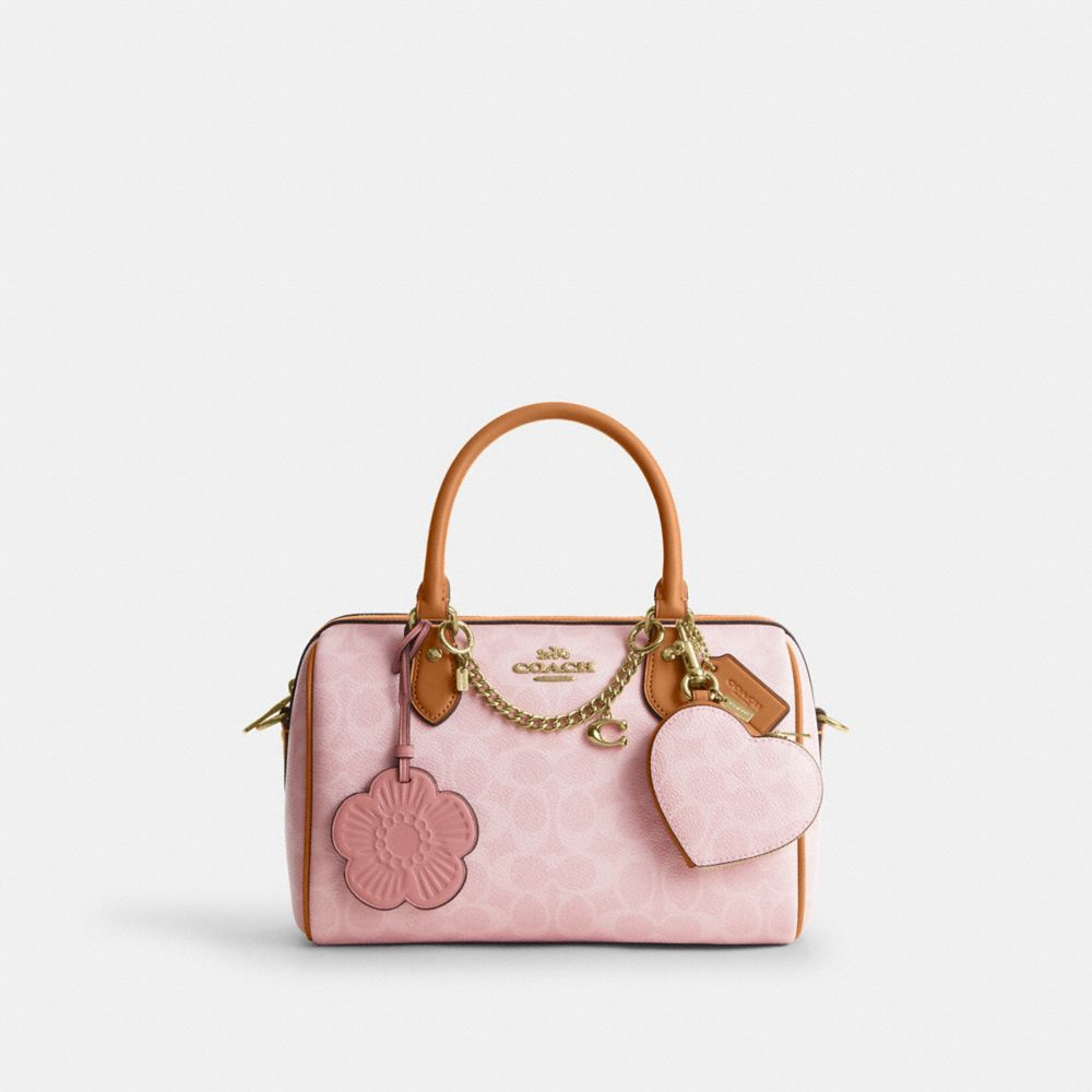COACH FACTORY OUTLET PRICE CHART - CEA22 - HEART BAG CHARM IN SIGNATURE CANVAS - GOLD/POWDER PINK