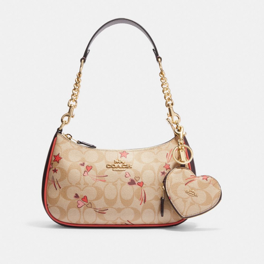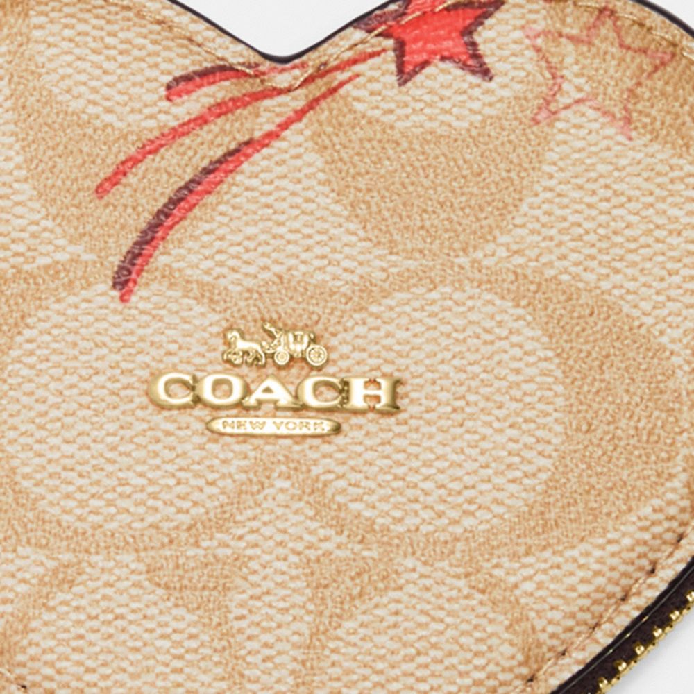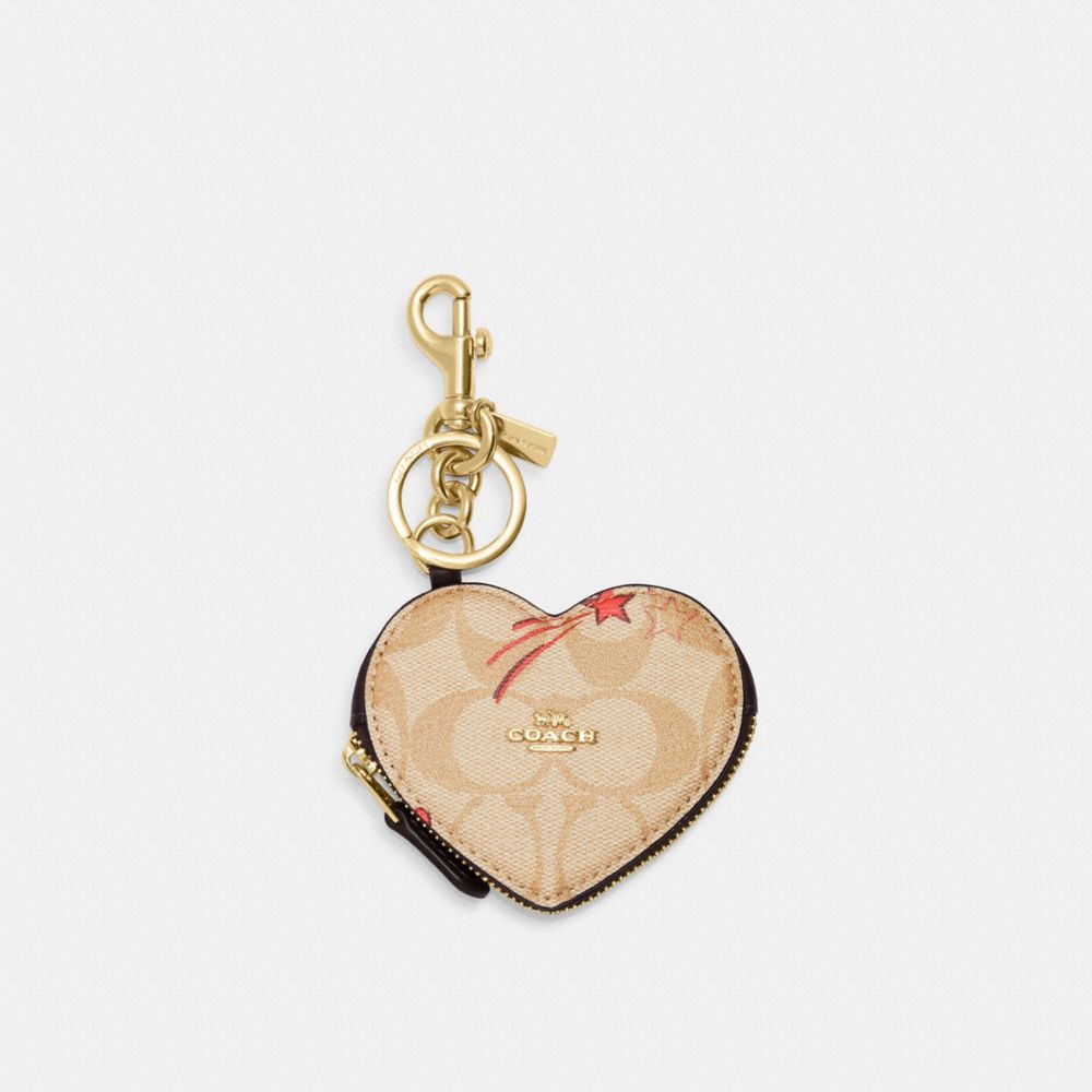 COACH FACTORY OUTLET PRICE CHART - CK071 - HEART POUCH BAG CHARM IN SIGNATURE CANVAS WITH HEART AND STAR PRINT - GOLD/LIGHT KHAKI MULTI