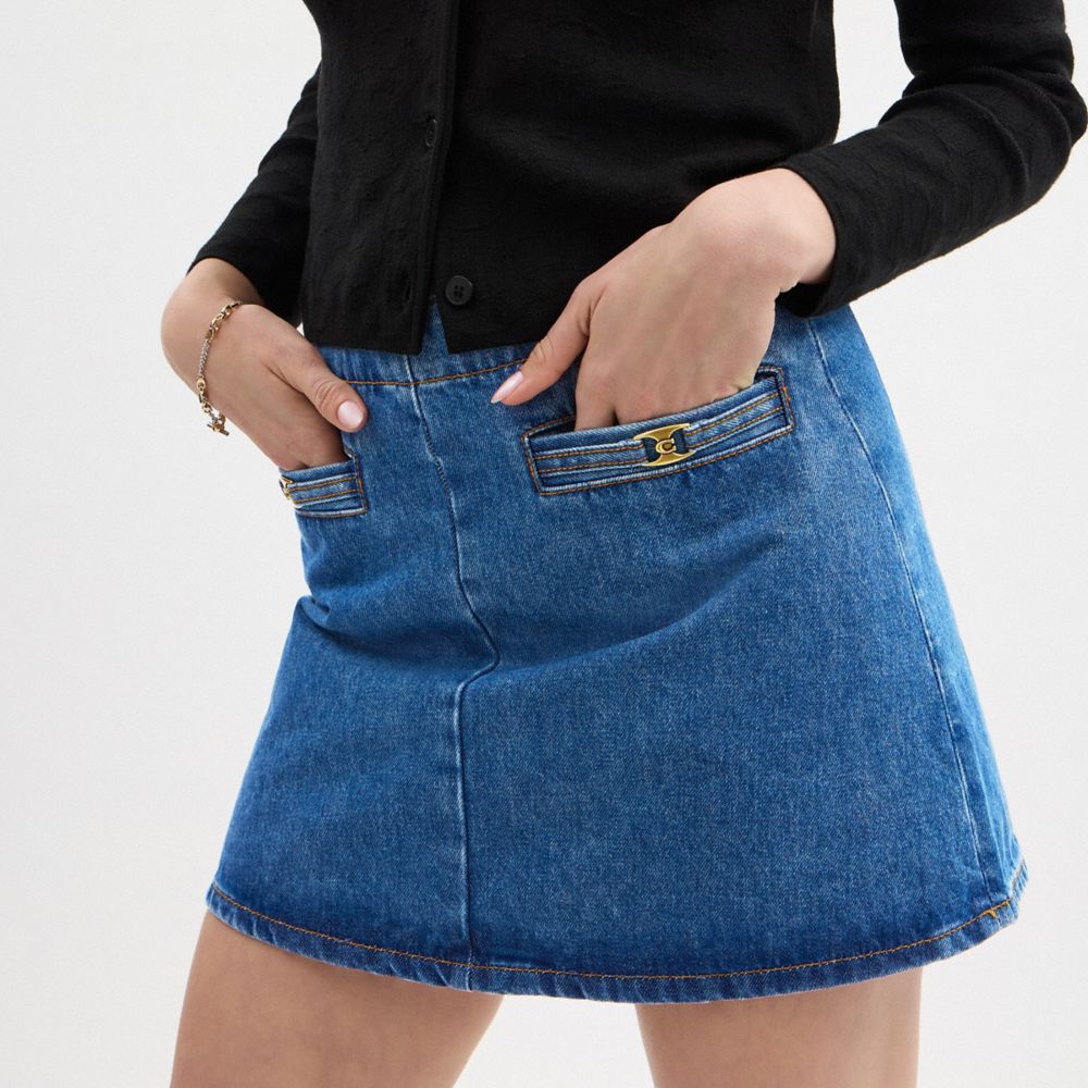 HERITAGE C DENIM MINI SKIRT IN ORGANIC COTTON (COACH CBQ89)