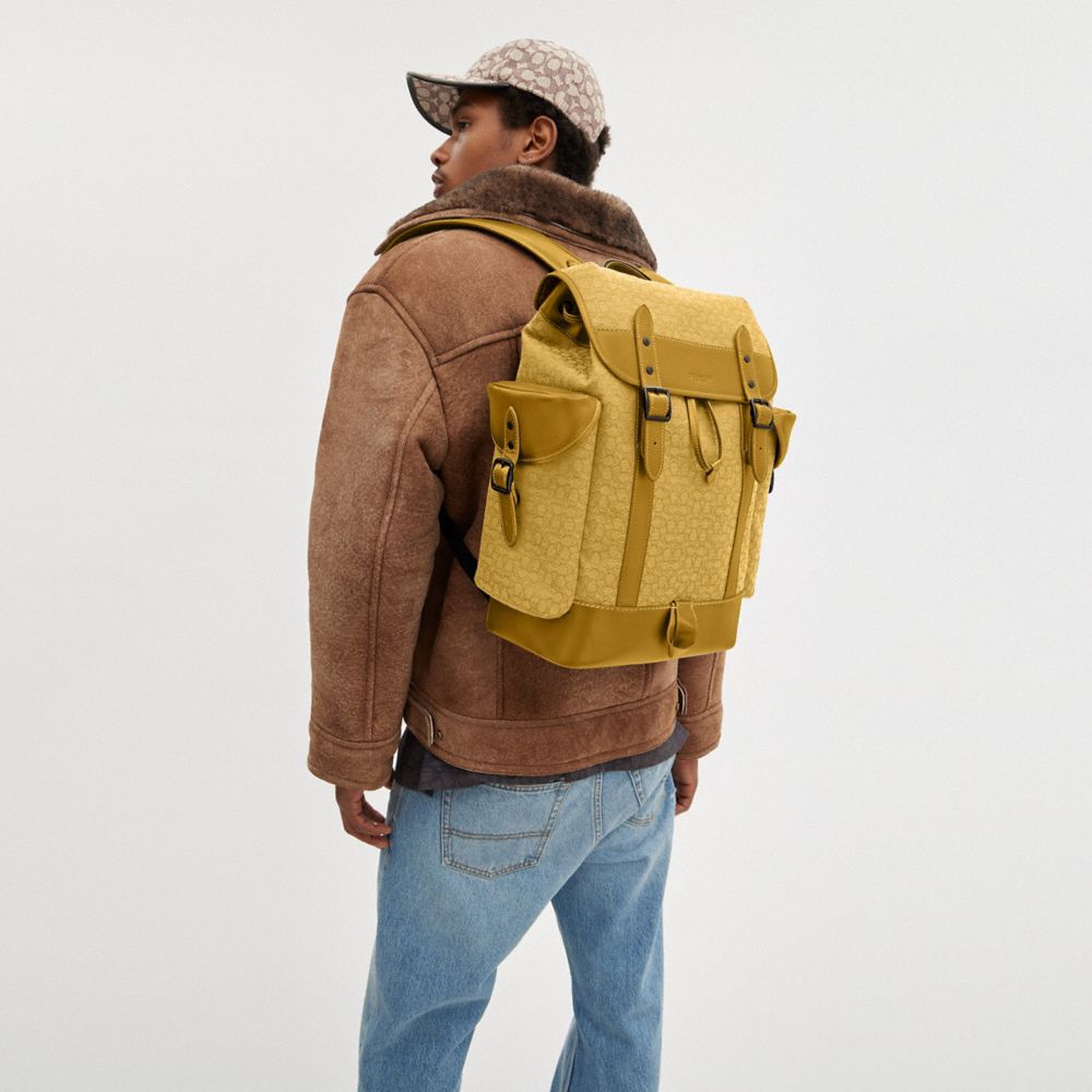 COACH FACTORY OUTLET PRICE CHART - CM387 - HITCH BACKPACK IN MICRO SIGNATURE JACQUARD - YELLOW/FLAX