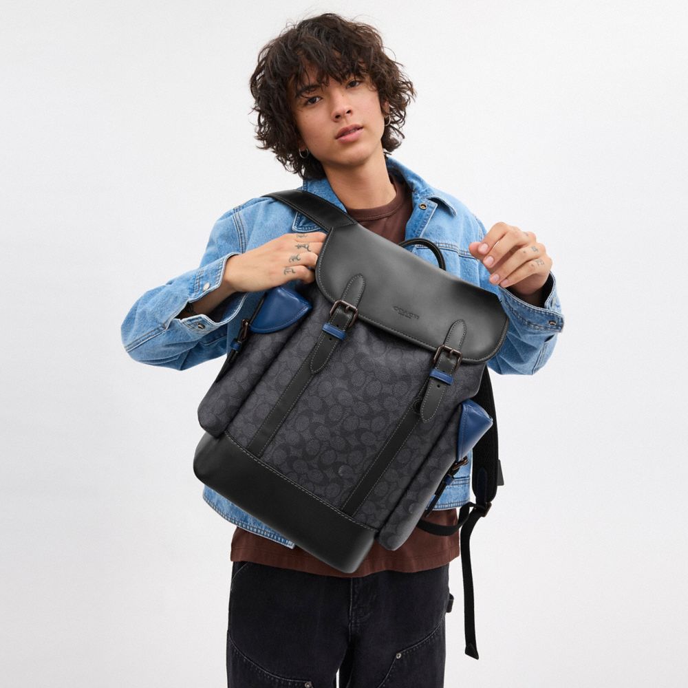 HITCH BACKPACK IN BLOCKED SIGNATURE CANVAS (COACH CV985)