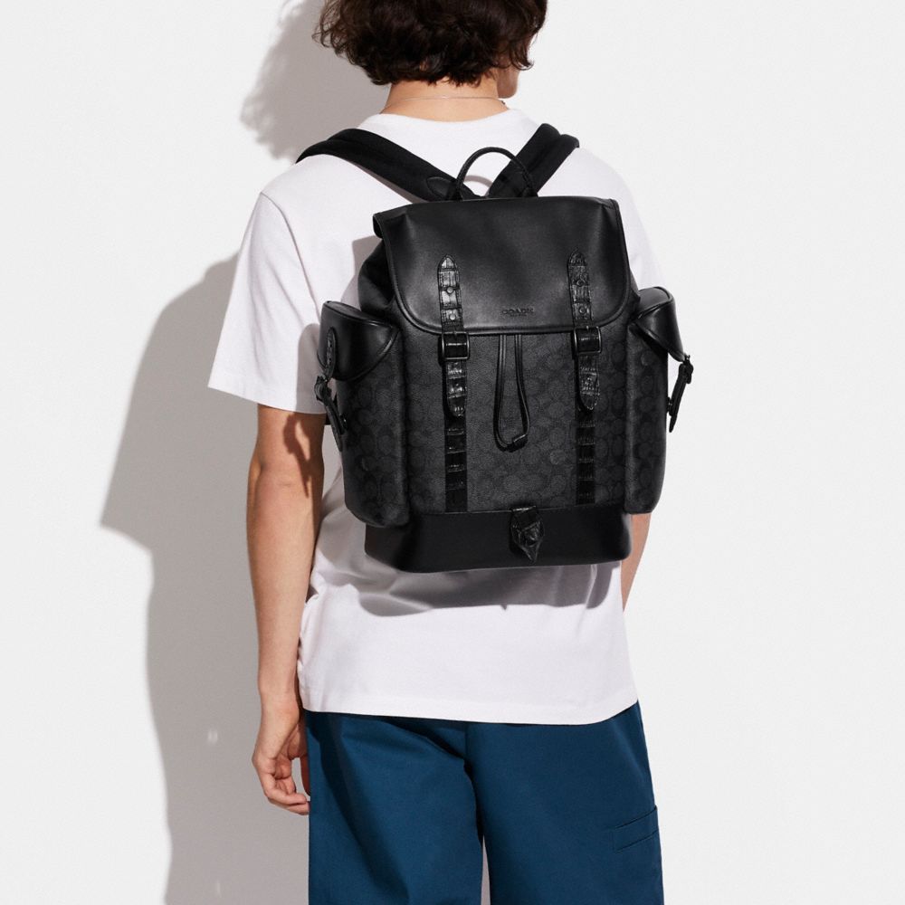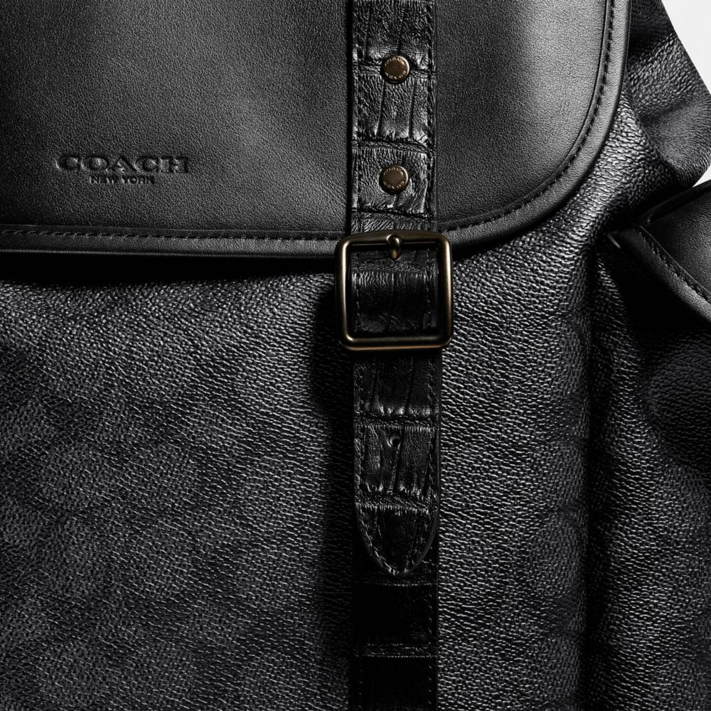 HITCH BACKPACK IN SIGNATURE CANVAS WITH CROCODILE DETAIL (COACH C8463)
