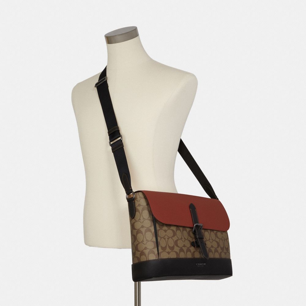 COACH FACTORY OUTLET PRICE CHART - C8142 - HUDSON MESSENGER IN COLORBLOCK SIGNATURE CANVAS - GUNMETAL/KHAKI TERRACOTTA MULTI