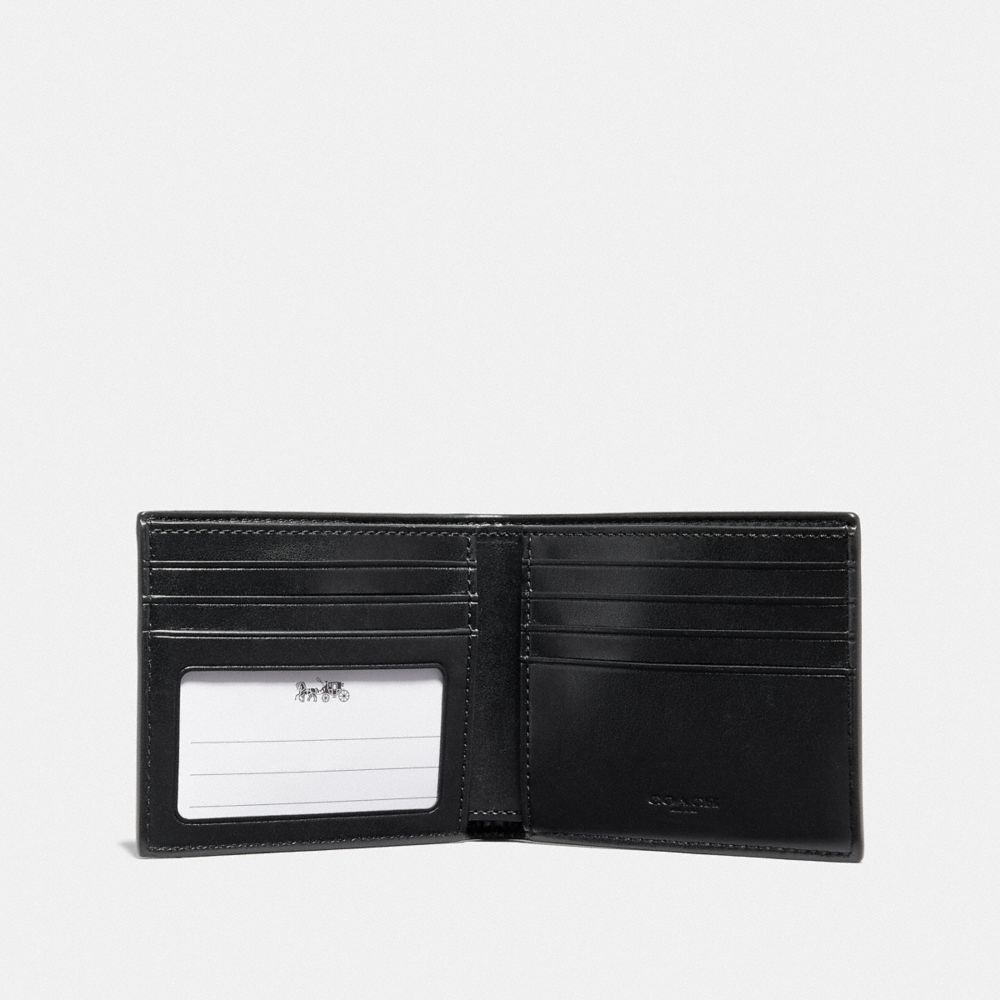 COACH FACTORY OUTLET PRICE CHART - F75912 - ID BILLFOLD WALLET IN SIGNATURE CANVAS WITH PAC-MAN COACH SCRIPT - CHARCOAL/BLACK/BLACK ANTIQUE NICKEL