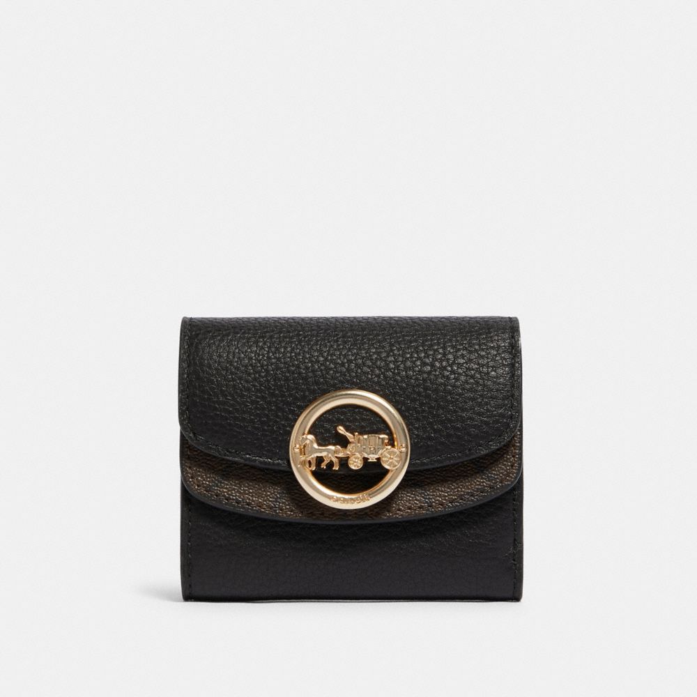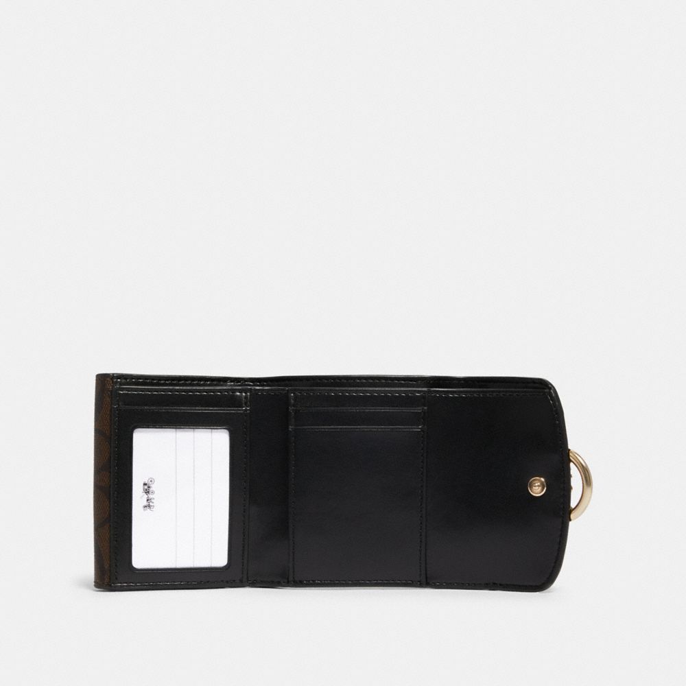 COACH FACTORY OUTLET PRICE CHART - F88003 - JADE SMALL DOUBLE FLAP WALLET WITH SIGNATURE CANVAS DETAIL - IM/BROWN/BLACK