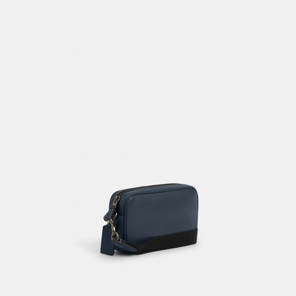 | Refined pebble leather and smooth calf leather | Inside multifunction pocket | Zip closure, fabric lining | Outside open pocket | Detachable strap with 27" drop for shoulder or crossbody wear | 7 1/2" (L) x 4 1/4" (H) x 1 3/4" (W)|Style No. CT870|