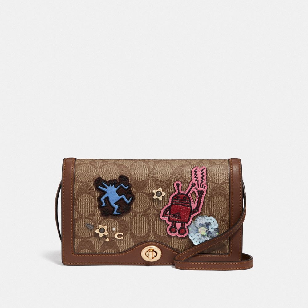KEITH HARING HAYDEN FOLDOVER CROSSBODY CLUTCH IN SIGNATURE CANVAS WITH PATCHES (COACH F55643)