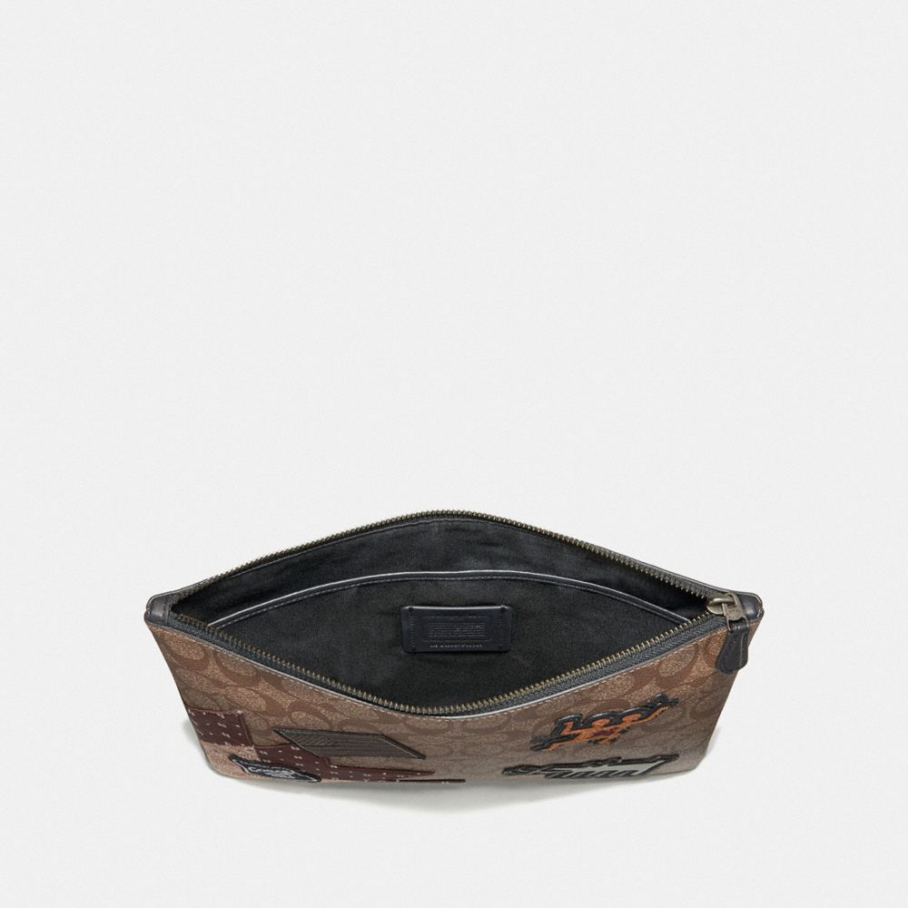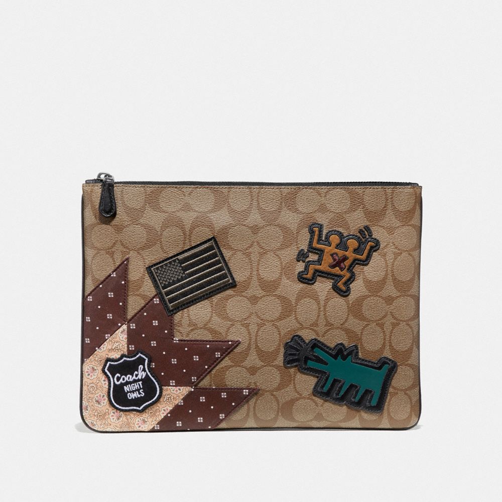 KEITH HARING LARGE POUCH IN SIGNATURE CANVAS WITH PATCHES (COACH F66585)