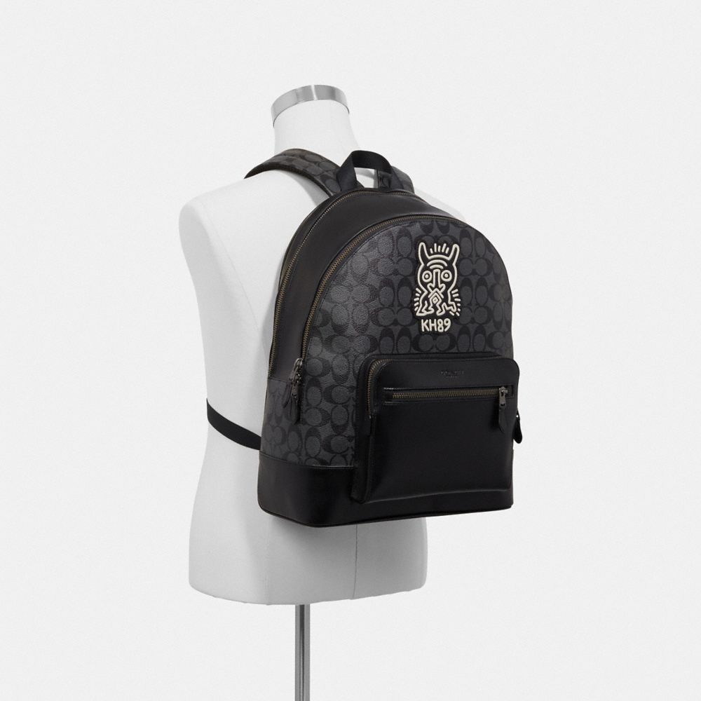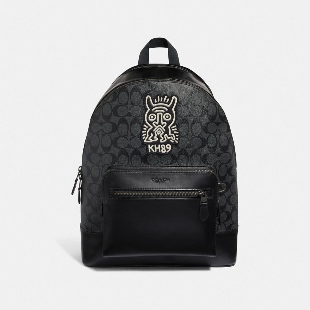 COACH FACTORY OUTLET PRICE CHART - F50057 - KEITH HARING WEST BACKPACK IN SIGNATURE CANVAS WITH MOTIF - CHARCOAL/BLACK/BLACK ANTIQUE NICKEL