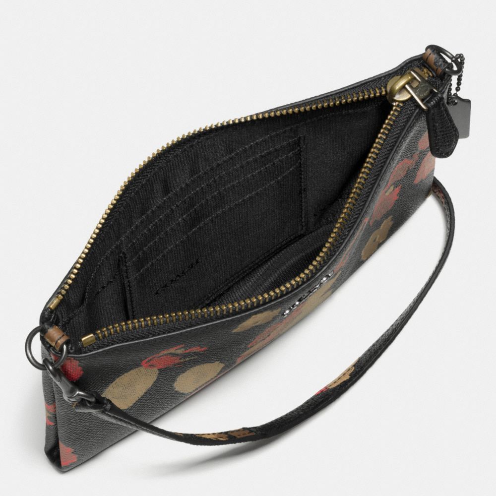 Details| | | Floral print leather| Three credit card pockets and open multifunction pocket| Zip-top closure, fabric lining| Adjustable strap with 23" drop for shoulder or crossbody wear| 8 1/2" (L) x 4 3/4" (H)