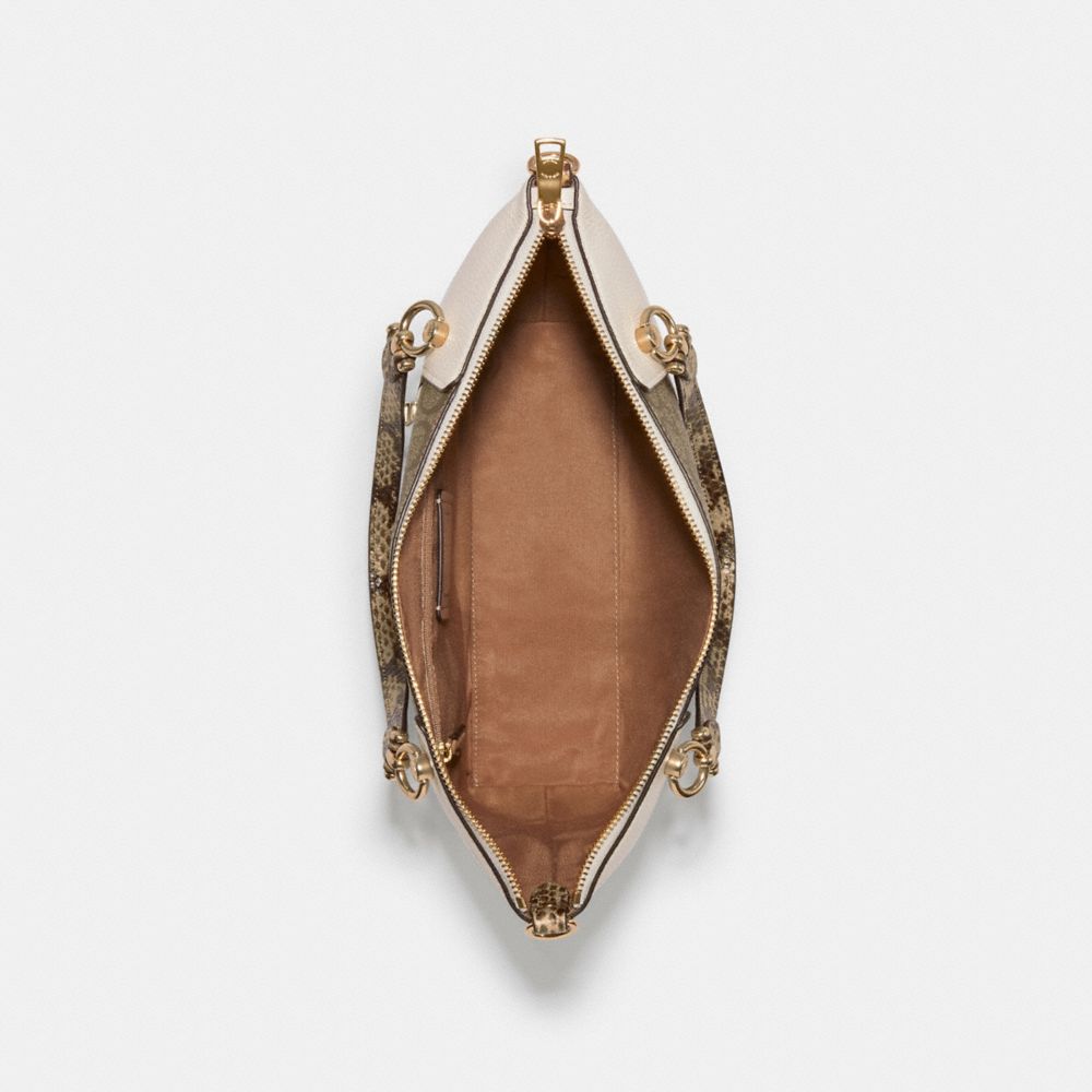 Signature coated canvas, refined leather and snake-embossed leather| Inside zip pocket| Zip-top closure, fabric lining| Handles with 5" drop| Outside zip pocket| Detachable strap with 22" drop for shoulder or crossbody wear| 8 1/4" (L) x 8 1/2" (H) x 3 3/4" (W)Style No. C7261