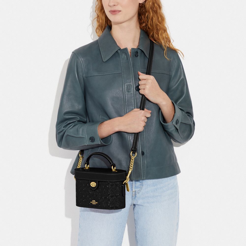 | Signature patent leather and smooth leather | Inside multifunction pocket | Turnlock closure, fabric lining | Top handle with 2 1/2" drop | Detachable strap with 23 1/4" drop for shoulder or crossbody wear | 7 3/4" (L) x 5 1/4" (H) x 3 3/4" (W)|Style No. CH316|