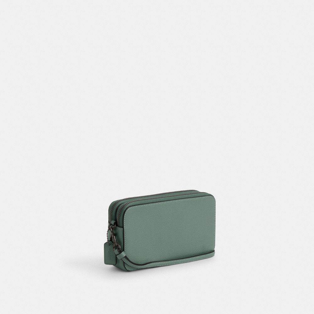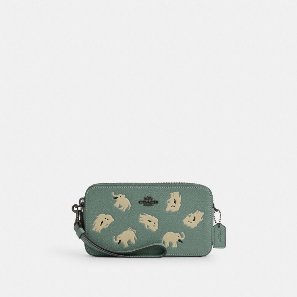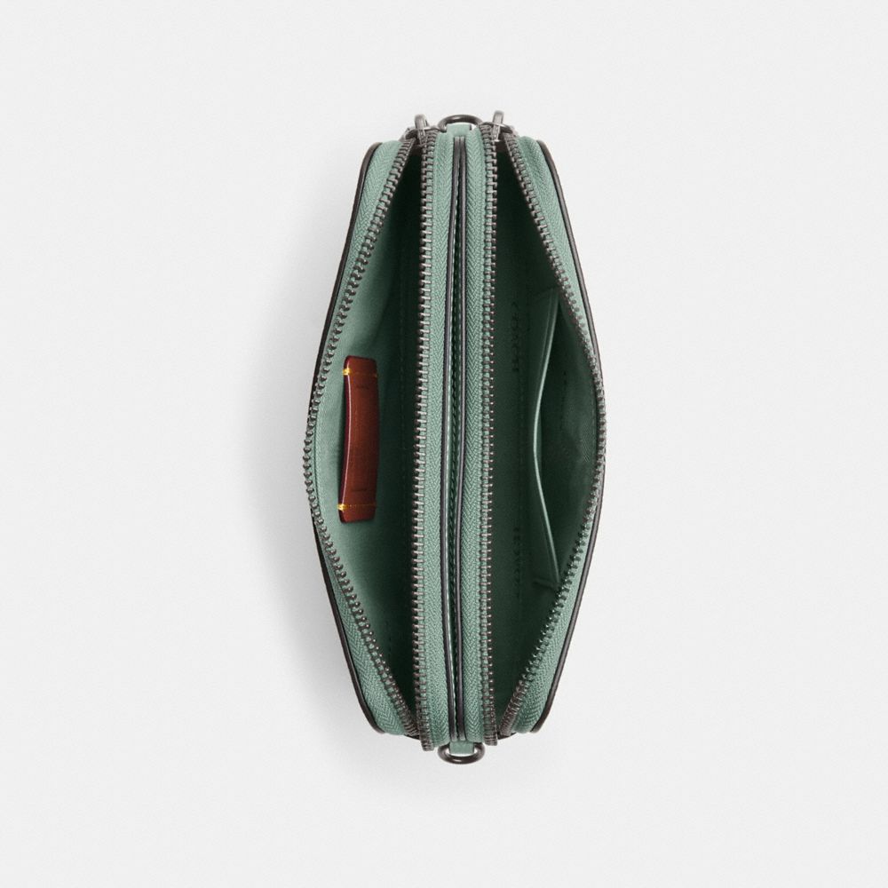 | Polished pebble leather | Four credit card slots | Double zip closure, fabric lining | Center open compartment | Detachable wrist strap | Detachable long strap with 23" drop for shoulder or crossbody wear | 7 1/2" (L) x 4" (H) x 1 3/4" (W)|Style No. C6826|