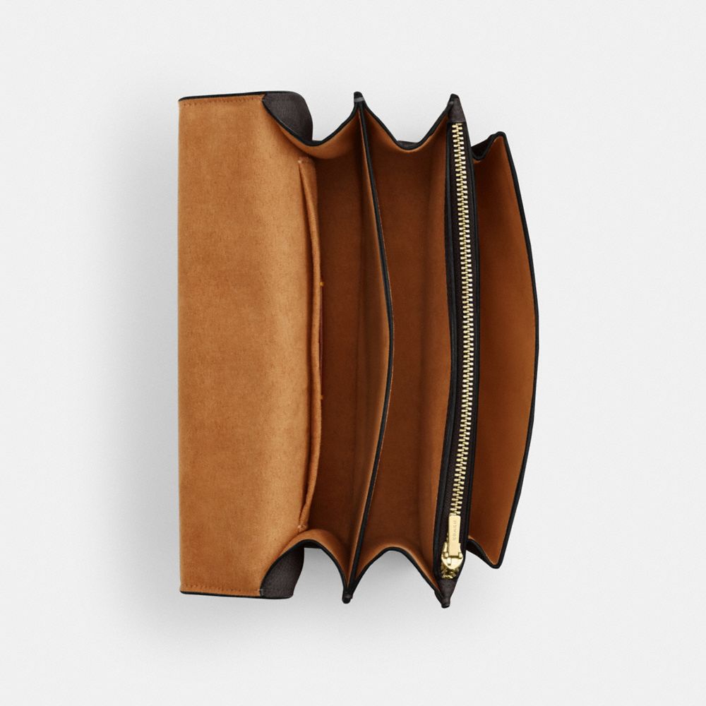 | Signature coated canvas and smooth leather | Inside zip and multifunction pockets | Snap closure, fabric lining | Outside slip pocket | Strap with 22" drop doubles up for three ways to wear: short or long on the shoulder or crossbody style | 8 1/2" (L) x 6 1/4" (H) x 2 3/4" (W)|Style No. CY678|