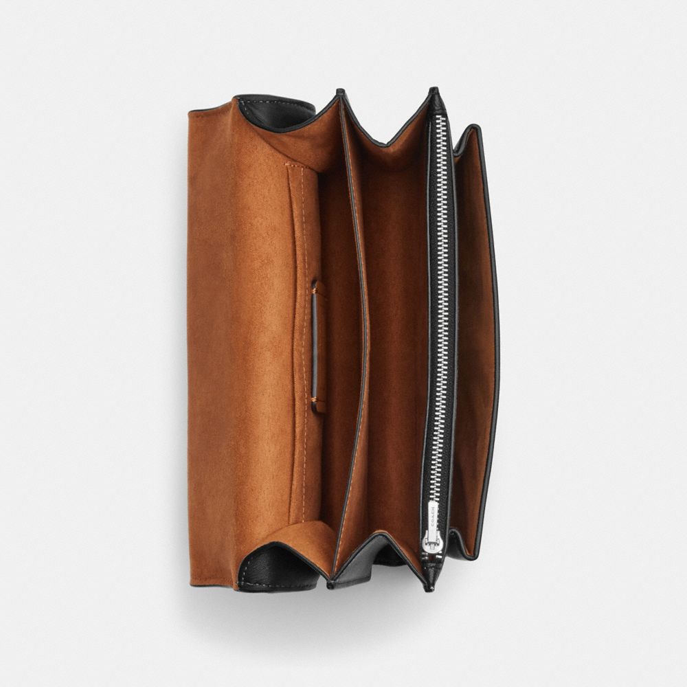 | Printed coated canvas and smooth leather | Inside zip and multifunction pockets | Snap closure, fabric lining | Outside slip pocket | Strap with 22" drop doubles up for three ways to wear: short or long on the shoulder or crossbody style | 8 1/2" (L) x 6 1/4" (H) x 2 3/4" (W)|Style No. CP090|