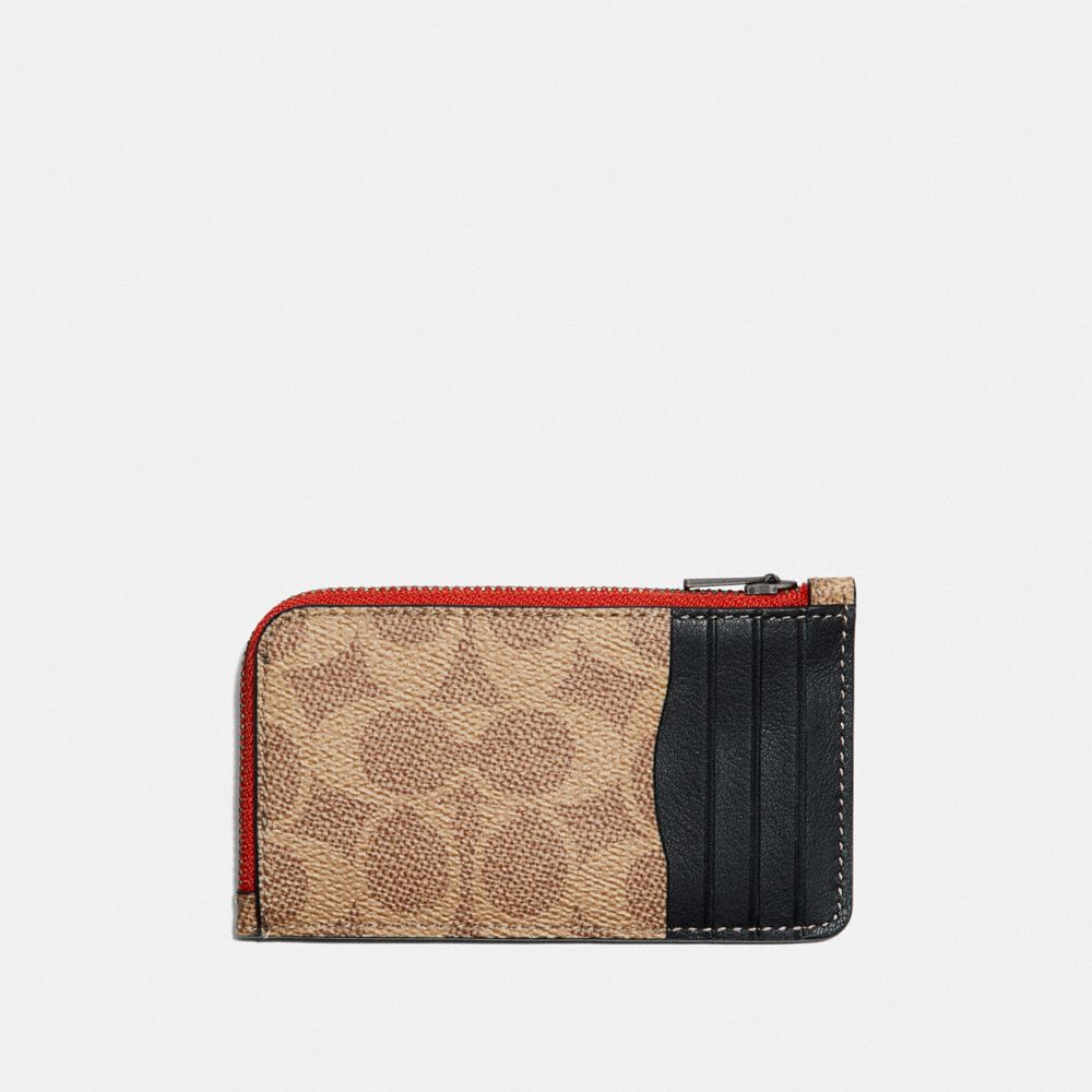 L-ZIP CARD CASE WITH SIGNATURE CANVAS BLOCKING AND COACH PATCH (COACH 76423)