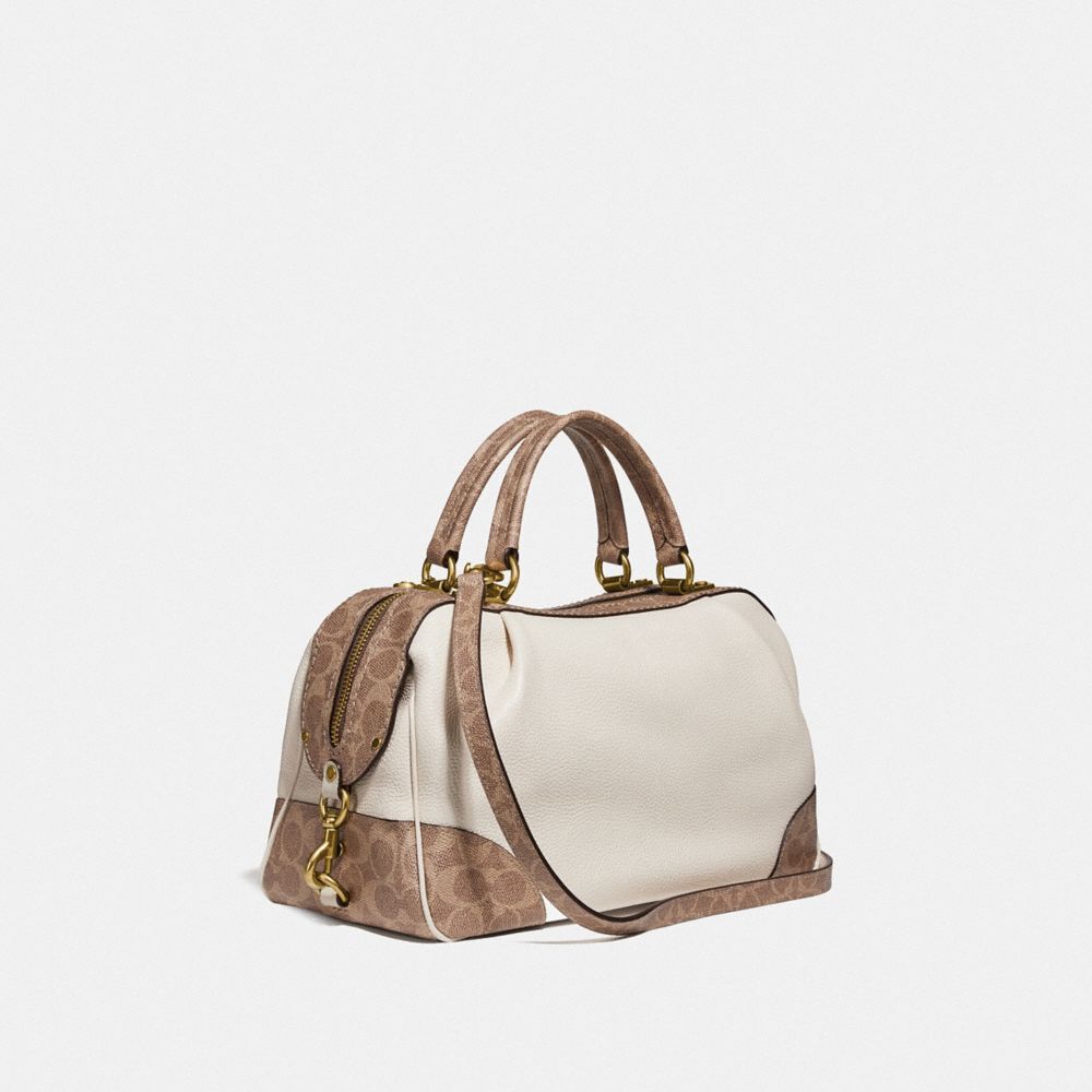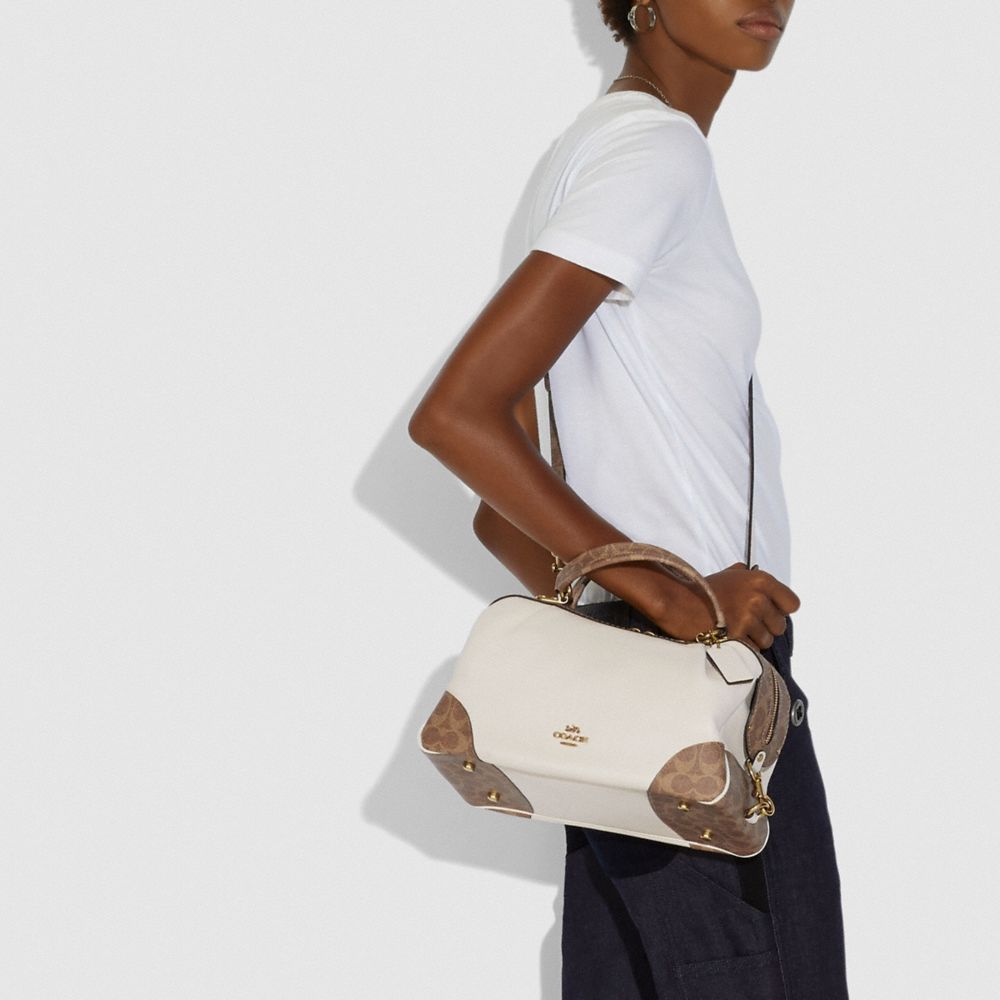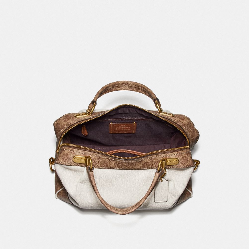 LANE SATCHEL WITH SIGNATURE CANVAS BLOCKING (COACH 76077)
