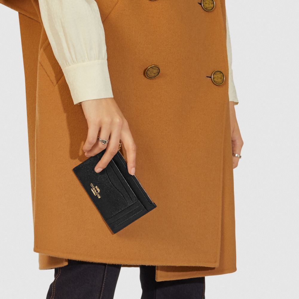 Crossgrain leather| Eight credit card slots| Zip pocket| 4" (L) x 3" (H)
