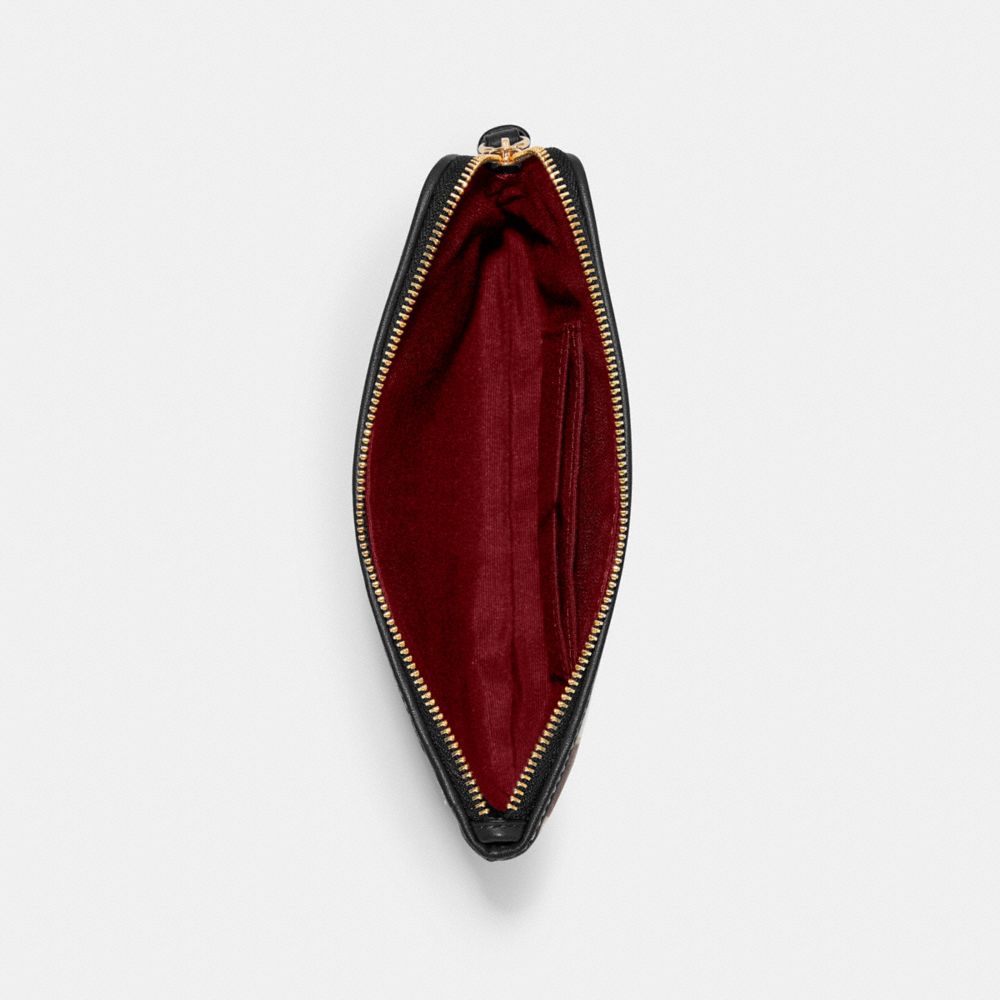 Signature jacquard and smooth leather| Two credit card slots| Zip closure, fabric lining| Wrist strap attached| 7 3/4" (L) x 4 3/4" (H) x 1/2" (W)